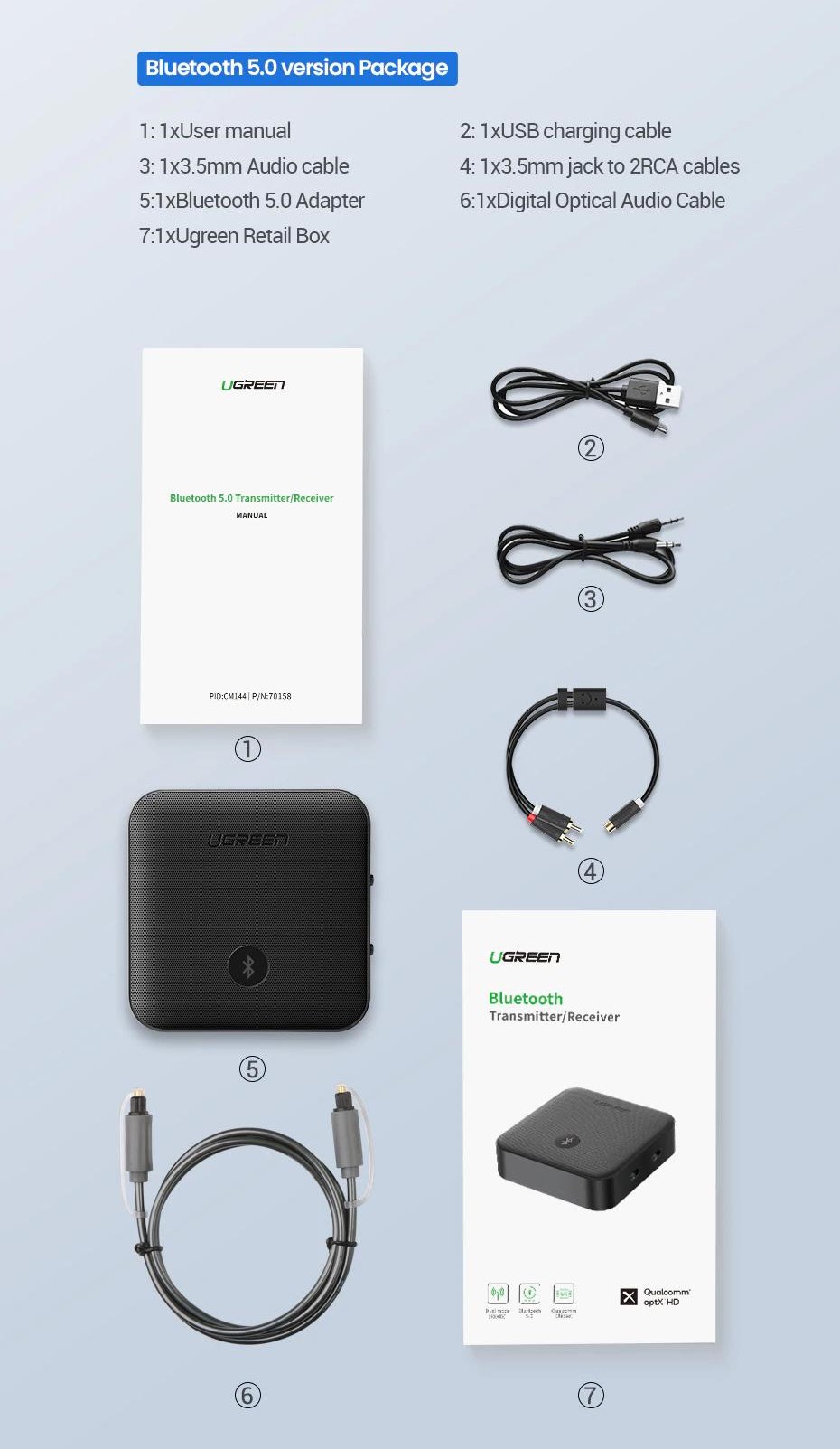 UGREEN Bluetooth-адаптер Qualcomm aptX HD 2in1 ПЕРЕДАВАЧ/ПРИЙМАЧ