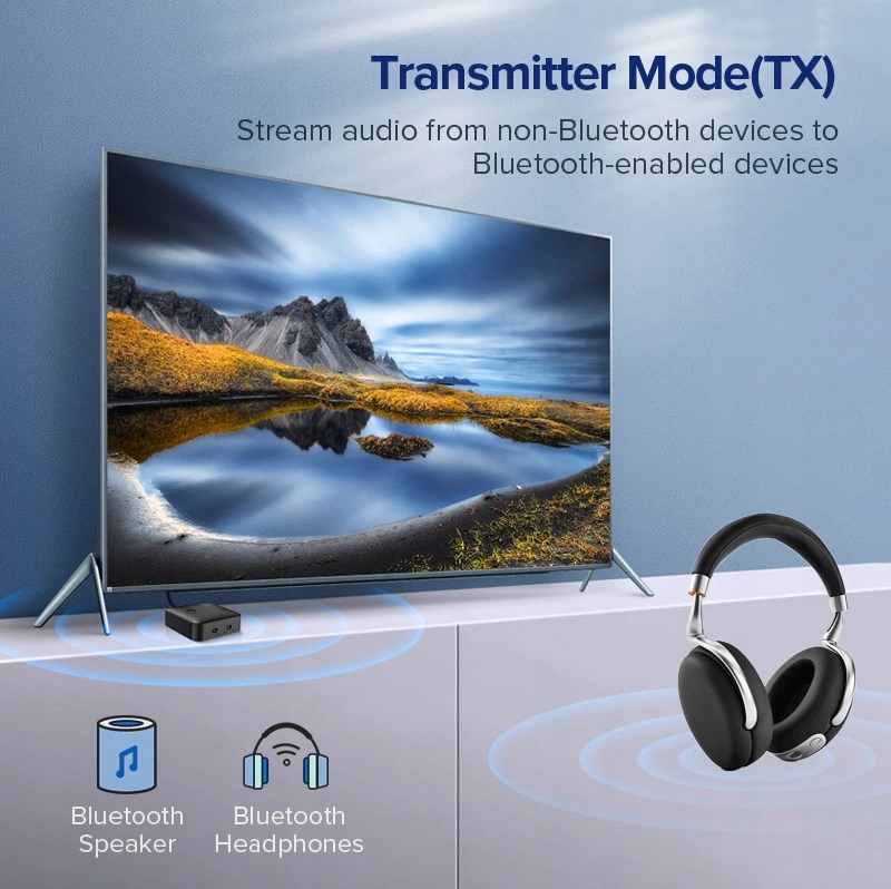 Використовується для передачі бездротового аудіосигналу на навушники або інший приймач Bluetooth. Джерело аудіо слід під’єднати до адаптера за допомогою кабелю aux, S/PDIF або RCA (адаптер aux/RCA входить у комплект).