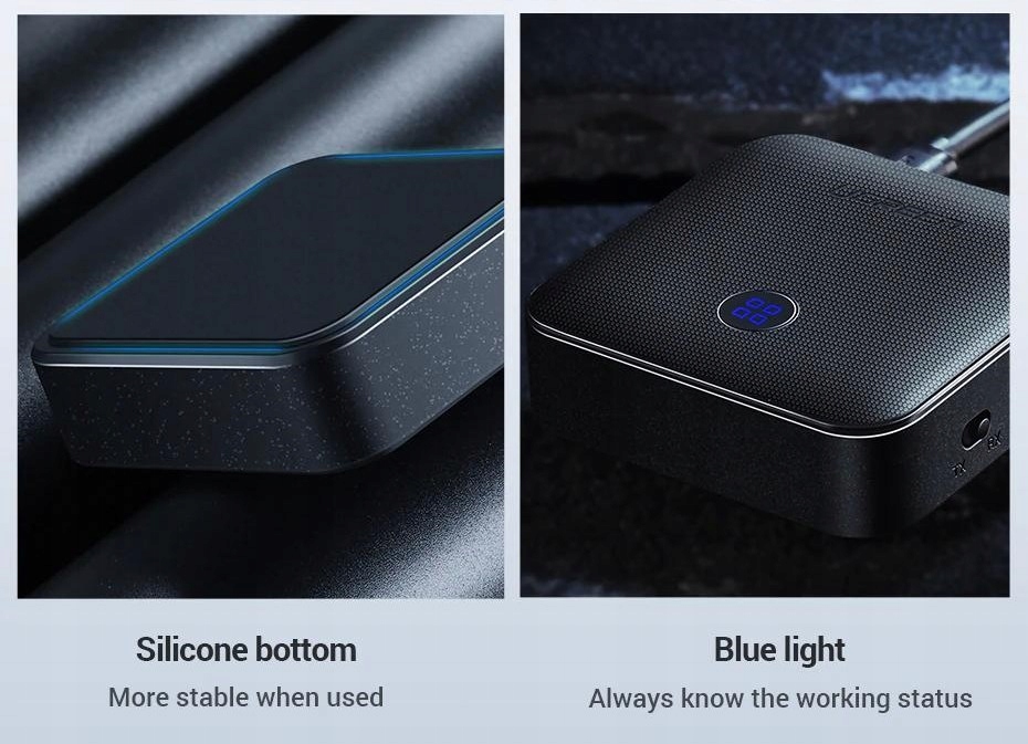 Використовується для передачі музики, що передається через зв’язок Bluetooth із таких пристроїв, як смартфон або планшет b> b>, до таких приймачів, як підсилювач, набір динаміків або автомобільний аудіоплеєр за допомогою 3,5-мм кабелю aux, Toslink або кабелю aux/RCA.