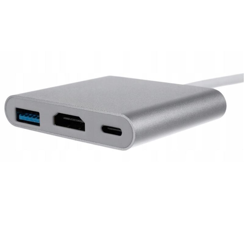 Адаптер забезпечує більше портів на вашому пристрої! Підключаємо HUB до гнізда USB Type-C і додаємо аж 3 виходи: HDMI, класичний USB і UBS Type-C, щоб не втратити цінну розетку. Простий пристрій і швидке підключення, що дозволяє одночасно передавати дані, зображення, звук і зарядку. Суперсучасний інтерфейс, сумісний із USB 3.1 Type C.