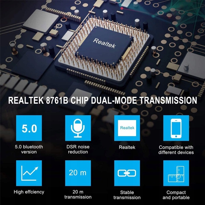 Адаптер Bluetooth 5.0: адаптер Bluetooth 5.0 із низькою затримкою використовує найновішу версію Bluetooth чіпсет 5.0, таким чином значно зменшуючи енергоспоживання Bluetooth. Швидкість передачі даних за технологією Bluetooth була значно покращена та досягає 3 Мбіт/с, швидше, ніж Bluetooth 4.0. Підтримує HIFI, високу якість звуку, відсутність затримок, стабільне з’єднання.
