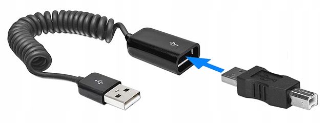 Пропонований адаптер має підключення USB2.0 Type B з одного боку (знайдений на периферійних пристроях, наприклад, принтерів, сканери, багатофункціональні пристрої тощо), а з іншого боку, введіть штекер (великий, все ще популярний, що з'являється в комп'ютерах, ноутбуках, маршрутиках, телевізійних приймачах тощо):