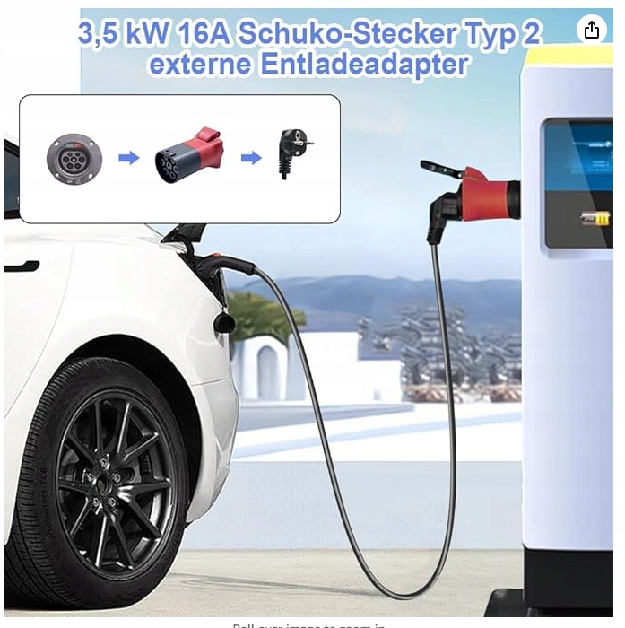 Адаптер Schuko типу 2: цей адаптер замінює зарядний порт вашого електромобіля типу 2 на стандартну європейську розетку. Це дозволяє живити інші пристрої під час кемпінгу чи активного відпочинку. Крім того, він надає допомогу на дорозі іншим електромобілям із недостатньою продуктивністю.