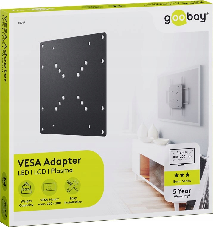 Цей адаптер VESA дозволяє збільшити відстань між отворами 50 мм x 50 мм у настінному кріпленні до 200 мм x 200 мм.