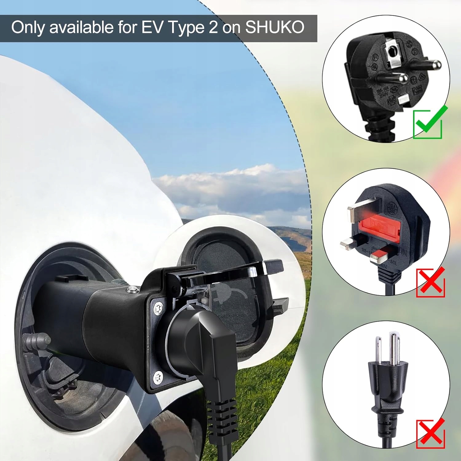 адаптер vobor v2l для ev, адаптер типу 2 на Schuko, 3,5 кВт, 16 a, 220 В, адаптер транспортного засобу для навантаження, mg4, mg5, mg zs, водонепроникний та пил -лист, щоб з'єднати електричні приймачі до автомобіля