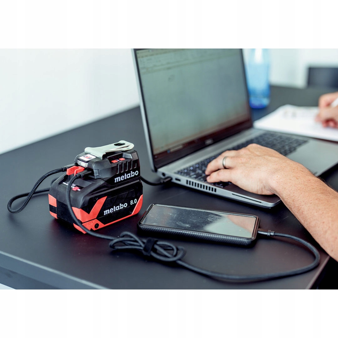Metabo PC 18-65 (600409000) - це компактний адаптер 3-в-1, який виконує функції зарядного пристрою 18 В, блока живлення та перетворювача енергії в системі CAS. Пристрій дозволяє швидко заряджати акумулятори (наприклад, 4,0 А·год приблизно за 70 хв), а також живити та заряджати мобільні пристрої через порт USB-C з потужністю до 65 Вт. Завдяки сумісності з Cordless Alliance System він може працювати з акумуляторами 18 В від багатьох виробників, що робить його практичним джерелом енергії в майстерні та в полі. Крім того, він оснащений світлодіодом, який функціонує як лампа, і ручками для легкого встановлення. Його невелика вага (приблизно 0,14 кг без акумулятора) робить його мобільним і універсальним рішенням для професіоналів і ентузіастів DIY.