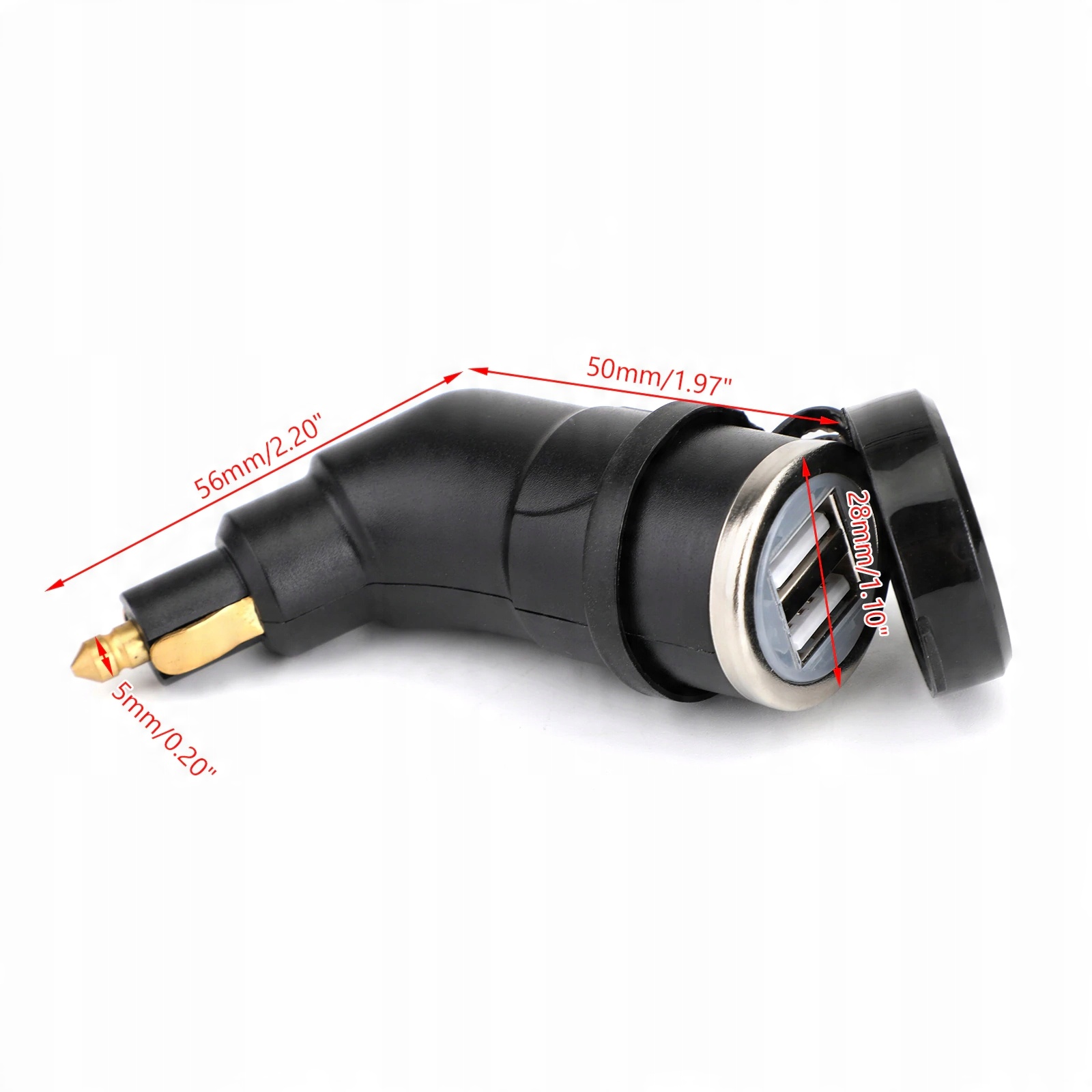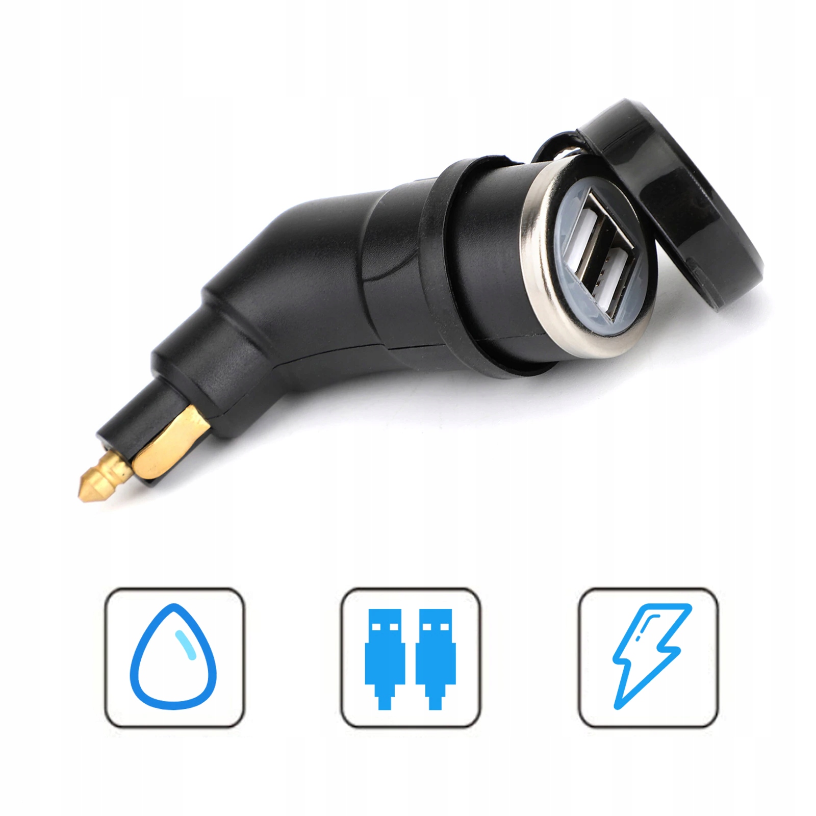 Адаптер від прикурювача з двома портами швидкої зарядки USB з напругою 5В 3,3А. Набір дозволяє використовувати обидві розетки одночасно, тобто заряджати, наприклад, навігацію і телефон одночасно. Розетки мають гумовий кожух, що захищає від води та пилу. Корпус виготовлений з металу, що робить виріб міцним і міцним. Найчастіше використовується у вантажівках BMW та TIR.