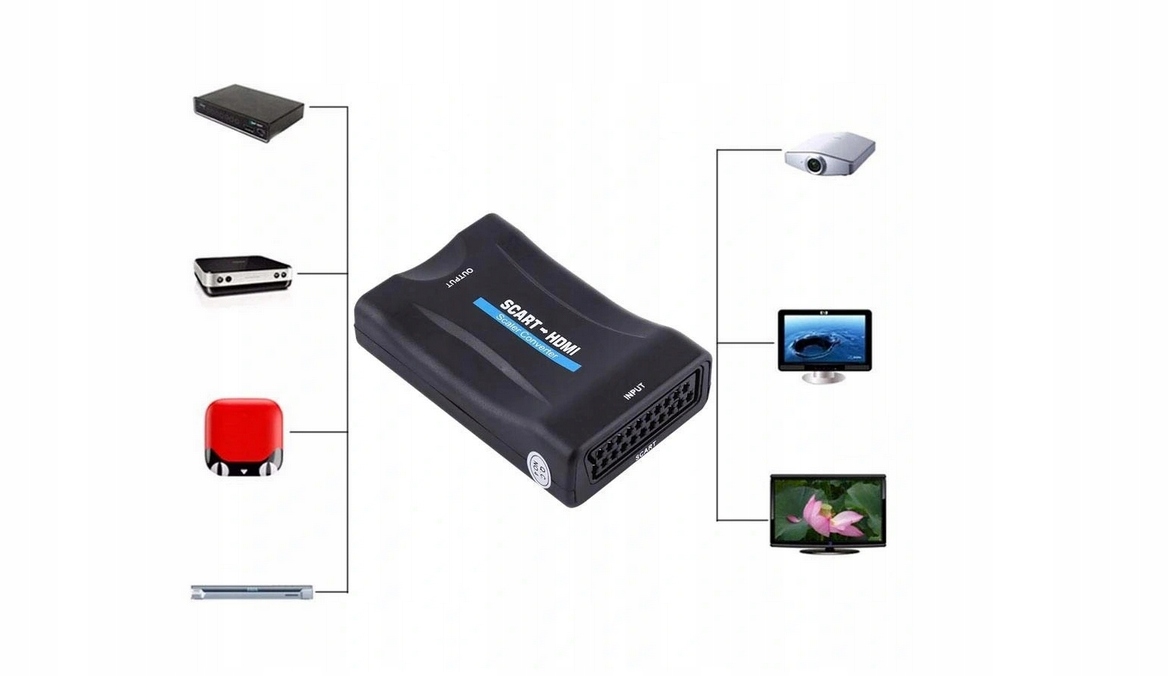 Конвертер передає цифровий сигнал високої роздільної здатності з роз’єму HDMI (наприклад, ігрові консолі, плеєри, комп’ютери, теледекодери) на аналоговий роз’єм EURO/SCART (наприклад, телевізори старого покоління) у системі PAL або NTSC. Зображення масштабується до відповідної роздільної здатності для стандарту EURO/SCART.