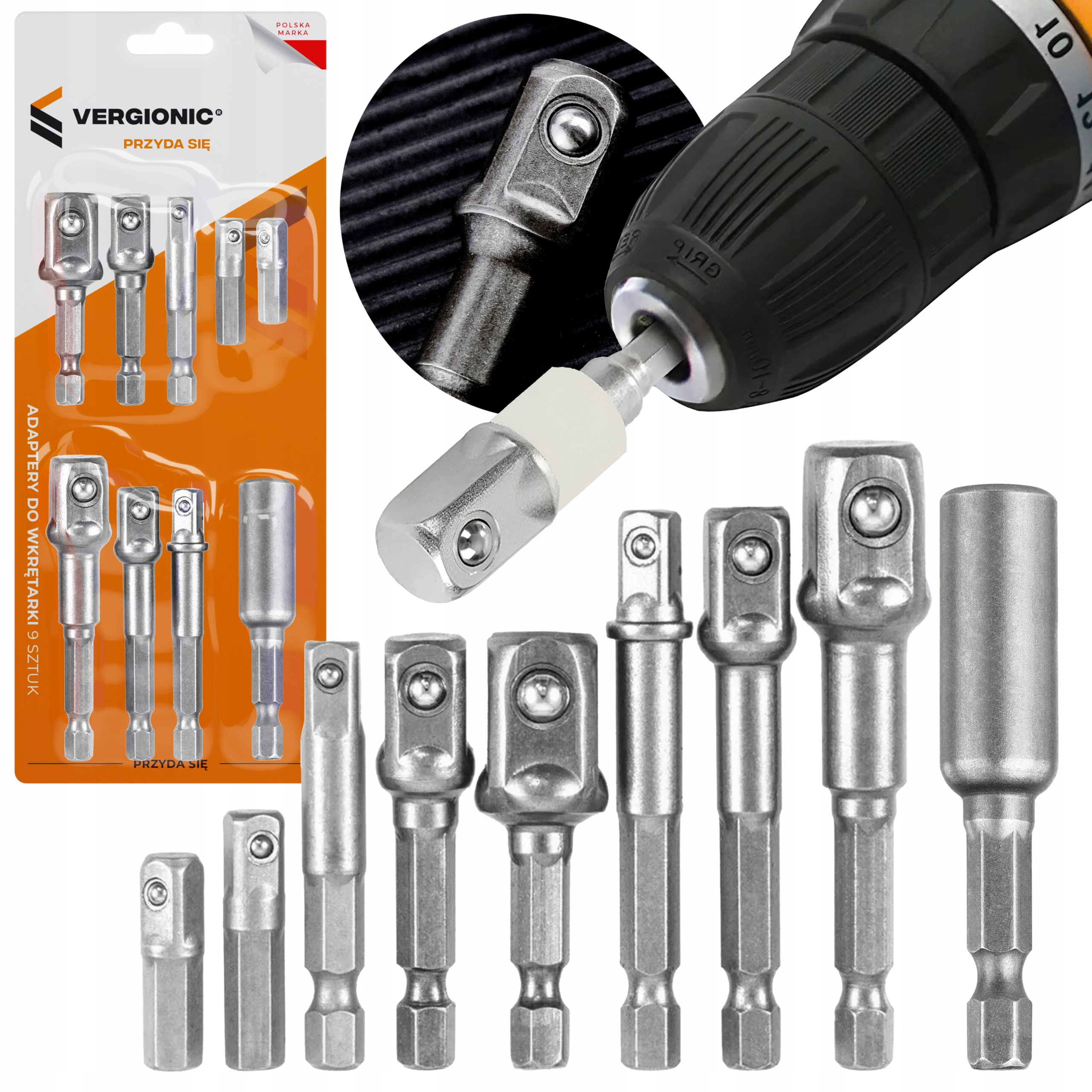 Включає 9 адаптерів різних розмірів, конфігурацій і довжини, виготовлених із високоякісної хром-ванадієвої сталі. Їх довговічність і зносостійкість забезпечать продуктивність для багатьох проектів і завдань.