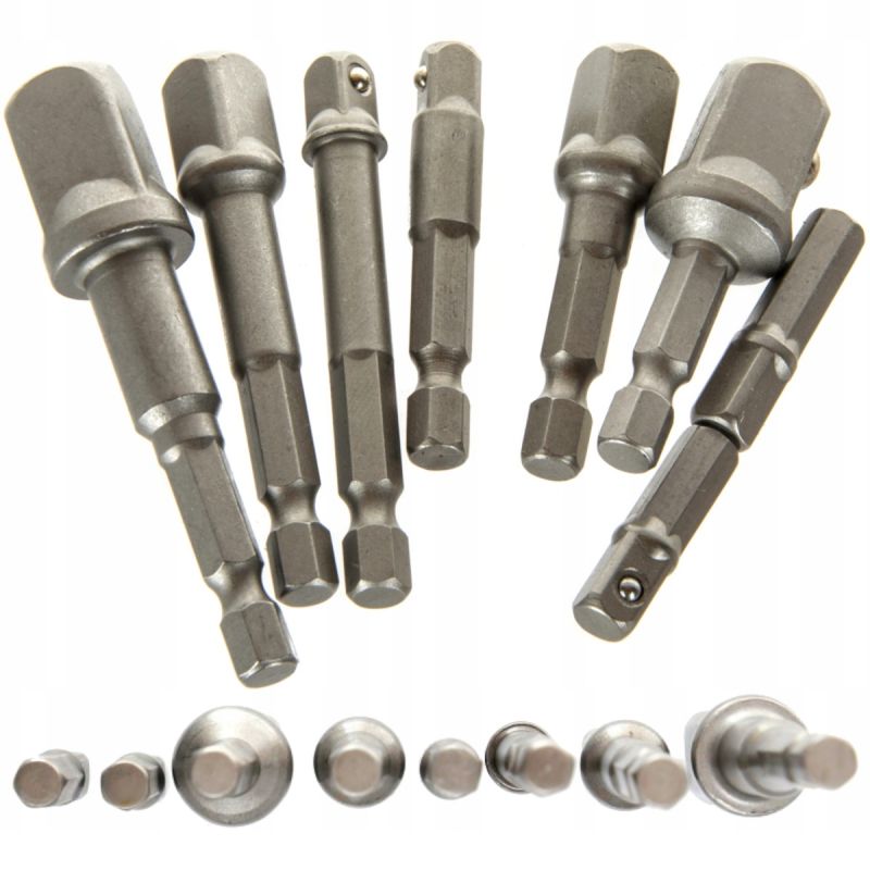 Набір спеціалізованих переходів і перехідників для викрутки. Редукції дозволяють використовувати викрутку з головками. Елементи набору виготовлені з інструментальної сталі, що гарантує їх міцність і тривалий термін служби.