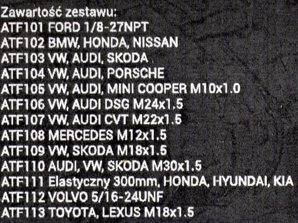 НАБІР АДАПТЕРІВ ДЛЯ ЗАМІНИ МАСЛА В АВТОМАТИЧНИХ КОРОБКАХ ПЕРЕДАЧ