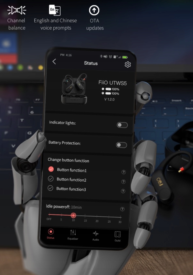 Високоякісна музика без втрат у вас під рукою. UTWS5 підтримує такі кодеки Bluetooth високої роздільної здатності, як LHDC і aptX Adaptive. Перейдіть у програму FiiO Music, де ви можете налаштувати звучання вашої музики так, як вам подобається.