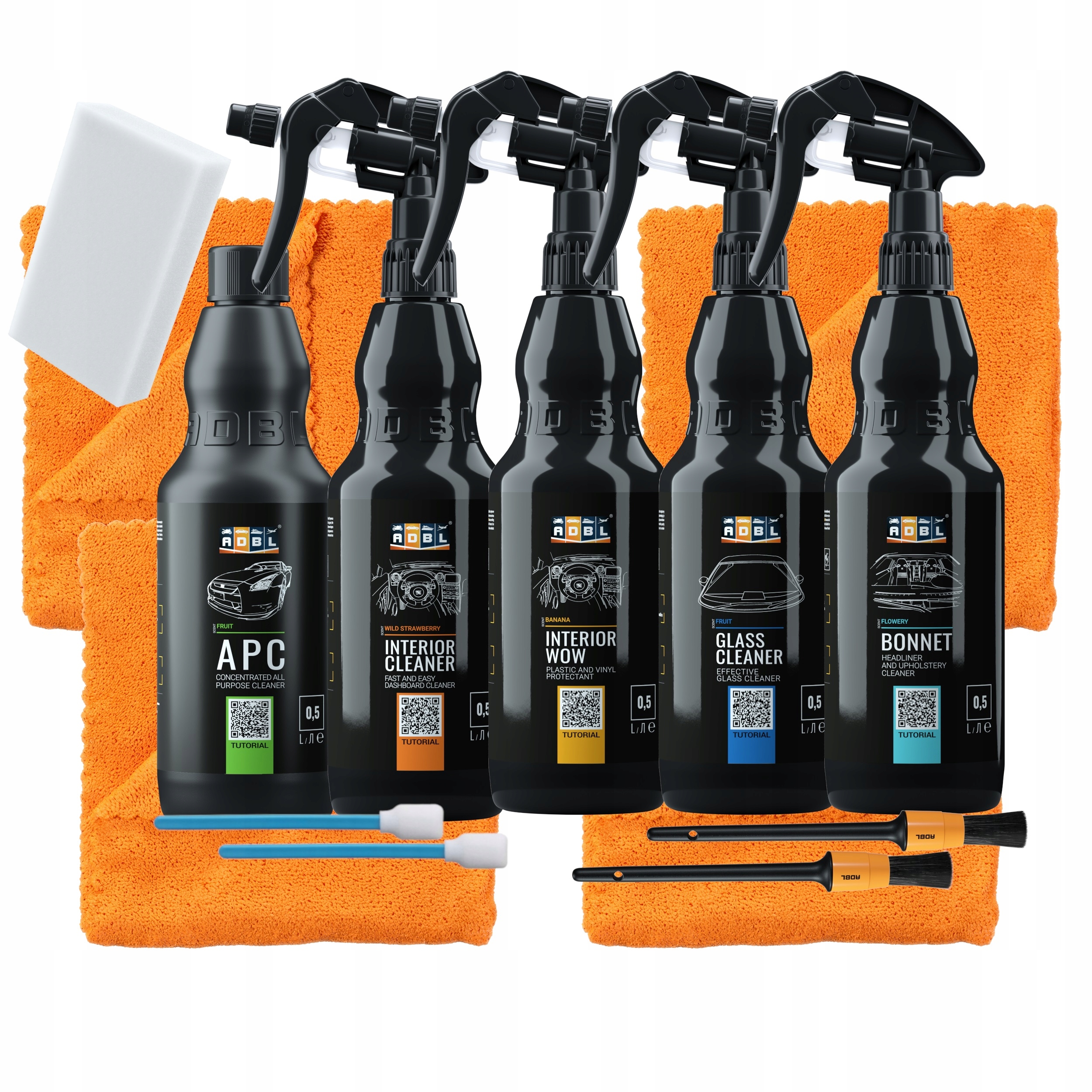 Набір косметики ADBL містить необхідні засоби та аксесуари для догляду за салоном автомобіля.