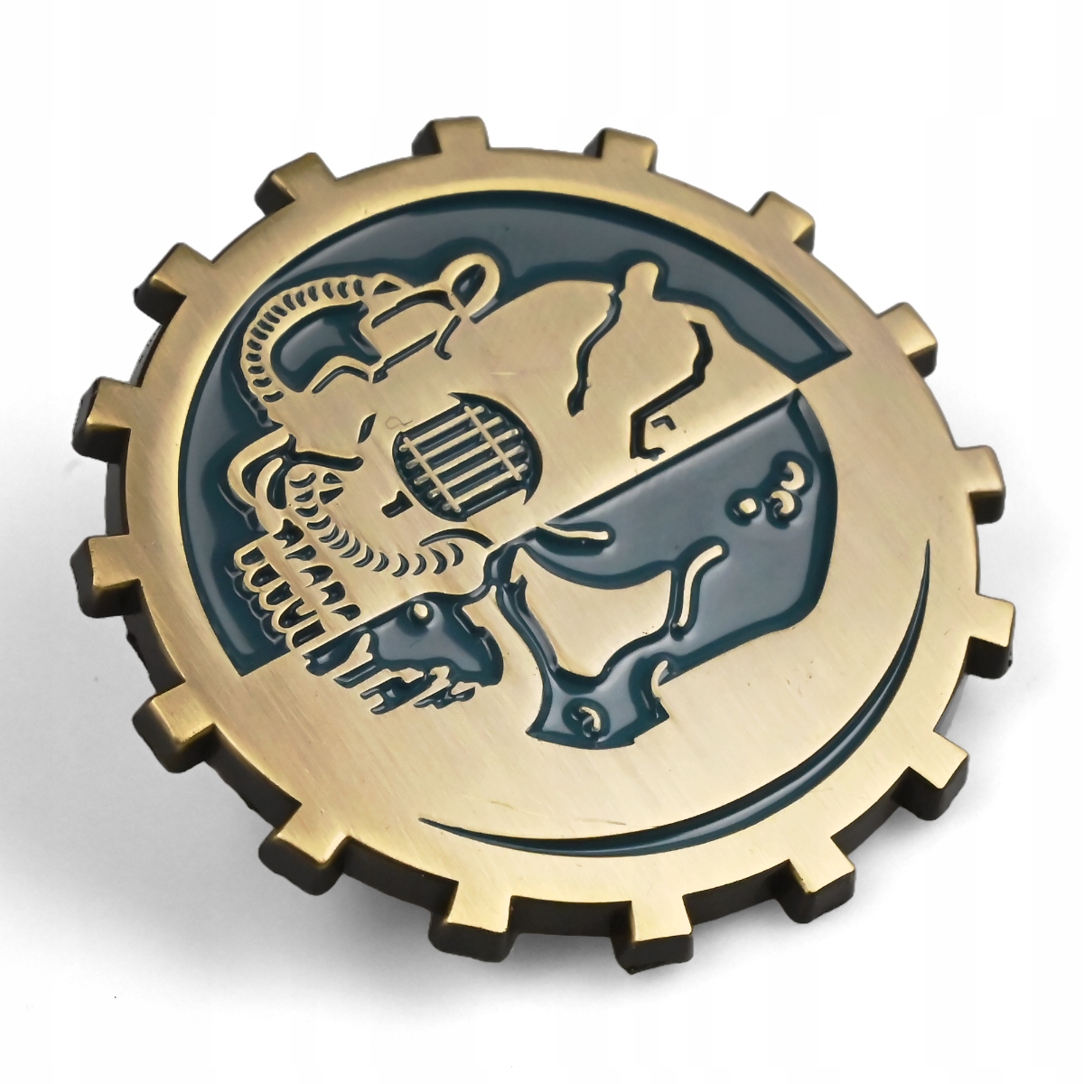 Виготовлений з міцного металу, закінченого в тіні теплої латуні, шпилька ловить око точно гравіровані деталі, наповнені чорною емалі. Чіткі контрасти між блискучою поверхнею та глибокими порожнинами створюють тривимірний ефект. Два золоті засувки на зворотному напрямку забезпечують стабільну кріплення до одягу, мішку або церемоніального халату. Незважаючи на компактний розмір 4 см, символізм цього штифта має велику силу. Це незамінний елемент колекції кожного послідовника Марса та пристрасного товару Warhammer 40K, який хоче відсвяткувати єдність душі з машиною.