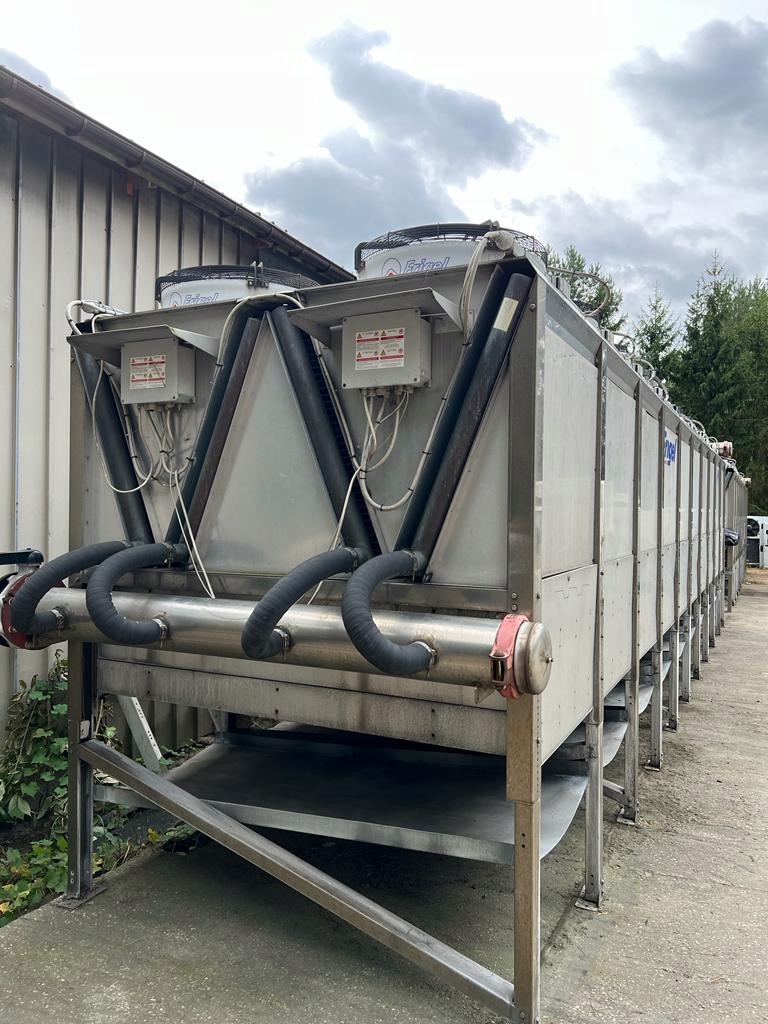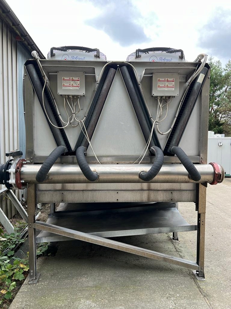 Сухий охолоджувач FRIGEL ECODRY з розпиленням води, адіабатичний охолоджувач, заміна випарної градирні, вентиляторна градирня, рідинний теплообмінник потужністю 1200 кВт.