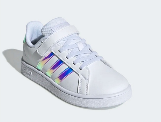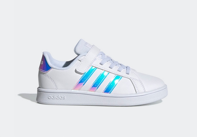 8ADIDAS GRNCOURT підготовлений для щоденного комфорту. Це дитяче взуття має еластичні шнурки з ремінцем, що забезпечує комфортну посадку маленьких ніжок. Кольорові 3 смуги завершують шкіряний верх.