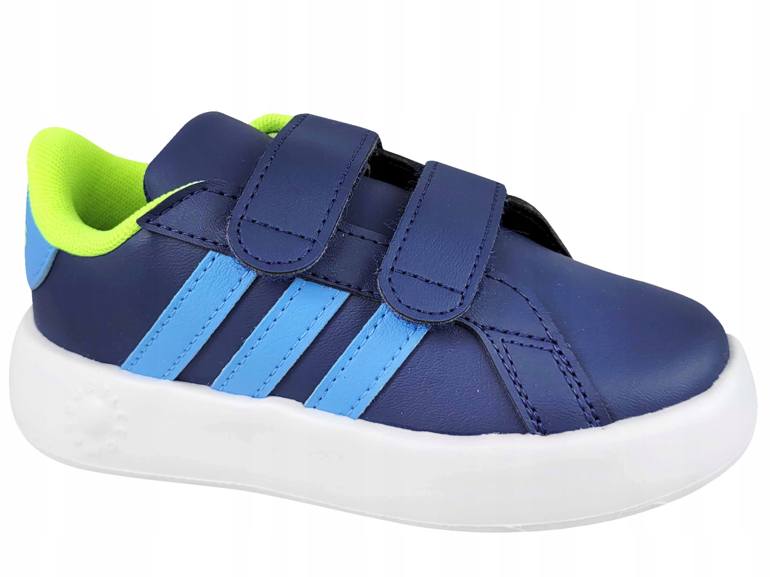 Класичне дитяче спортивне взуття від Grand Court Adidas Grand - це зручна, функціональна модель, закріплена на липучках, що полегшує швидке надягання та зняття взуття. Три смуги додатково піднімають спортивний вигляд. Взуття