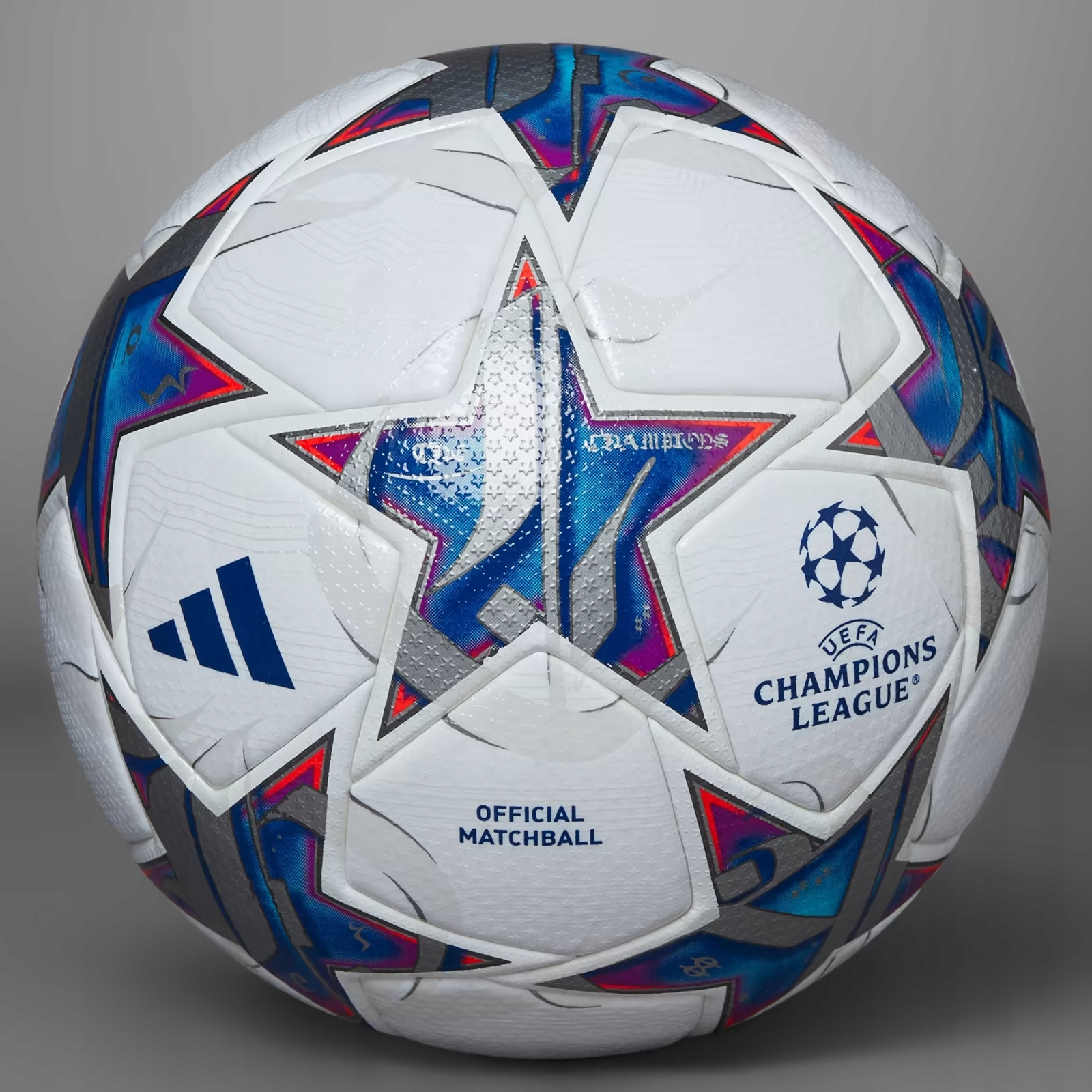 Коли найкращі гравці з європейських клубів стоять пліч -о -пліч, два слова знаменитого гімну, який лунає на стадіоні, стають для них натхненням. Бал UCL Pro для групової фази турніру в сезоні 23/24 відображає повідомлення музики завдяки дизайну, натхненному текстом гімна. Професійний м'яч має стильний напис, що складається з 12 букв: "Чемпіони" на 12 -зіркових панелях. Тонкі музичні ноти доповнюють погляд око -привернення м'яча, створеного для гри на найвищому рівні, і нагороджений сертифікатним сертифікатом FIFA Pro