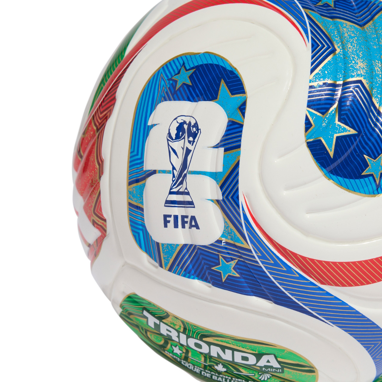 Різнокольоровий дизайн черпає натхнення з офіційного матчевого м’яча Чемпіонату світу з футболу FIFA™ 26™, рельєфні деталі якого поєднують символи та кольори трьох країн-господарів турніру. Крім того, графіка ефектно притягує погляди, тому ви зможете легко стежити за траєкторією польоту м'яча. Синтетичне покриття TPU створює витончену конструкцію, готову до гри в складних умовах. М'яч оснащений піноматеріалом, який підтримує правильну форму. Тренування з футбольним м'ячем adidas піднімуть вашу майстерність на вищий рівень.