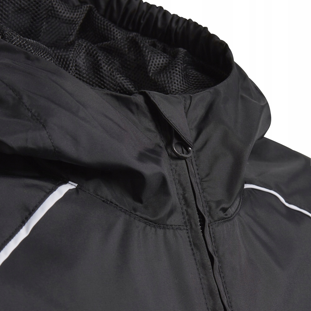 футбол, дощова куртка Adidas Core 18. Це захистить вас від несприятливих погодних умов під час тренувань. Сітка вистелена по всій поверхні, яка піднімає матеріал з поверхні шкіри і дозволяє циркуляцію повітря. З боків є дві бічні кишені, які розмістить дрібні предмети. дитяча куртка має регульований капюшон, захований у комірі, що додатково захистить від мокри.