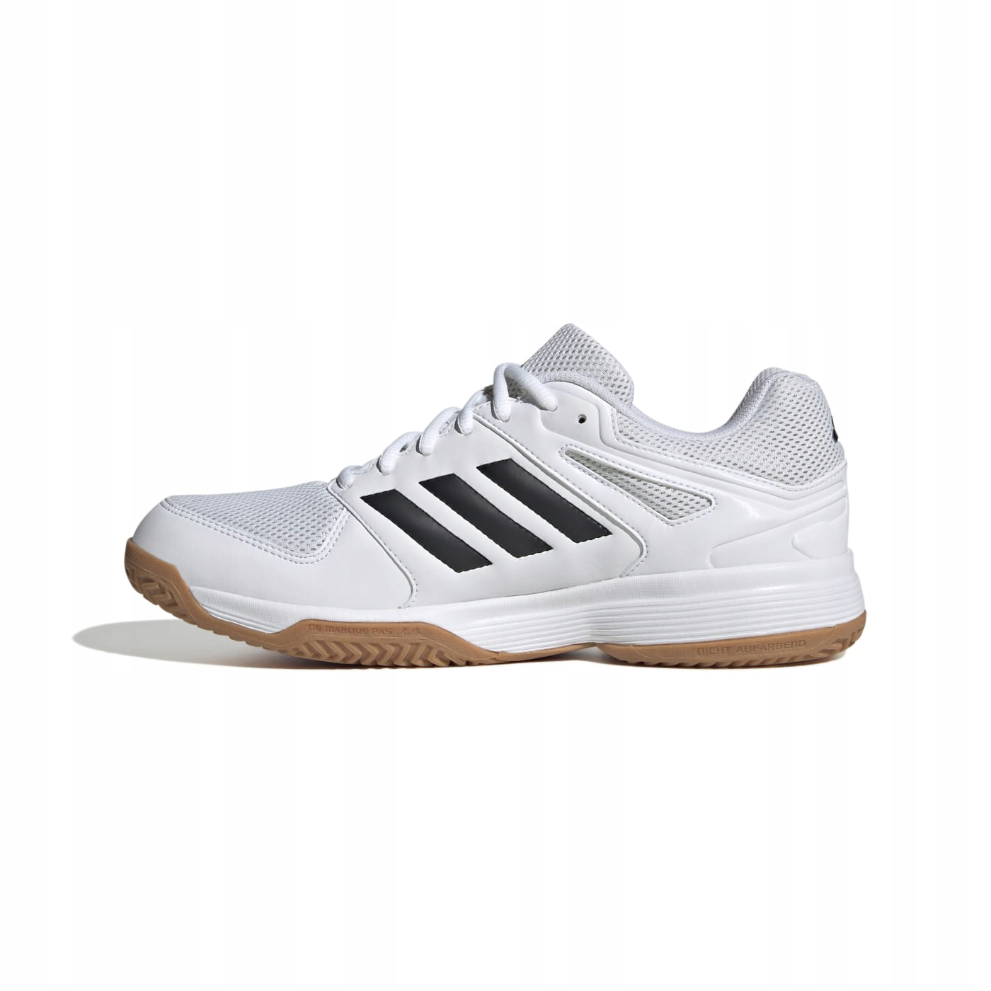 Віддайте себе на повну під час гри на закритому корті в цих туфлях Adidas. Легкий текстильний верх забезпечить вам комфорт у критичні моменти. Гумова підошва забезпечує зчеплення з рівними поверхнями, дозволяючи швидко змінювати напрямок, тож ви завжди готові приймати паси та блокувати суперника.