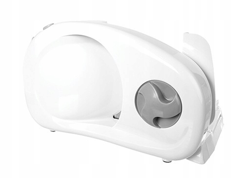 компактний, безпечний нарізний, складений. Зі знімним штовхачем. Сильний пластик, з якого він виготовлений, дозволяє легко перенести. Високоякісне лезо з нержавіючої сталі дозволяє розрізати ковбасу на тонкі шматочки і нарізати тверду пайду сільського хліба. Товщину різання можна легко регулювати. Ціле може легко розповсюдитись на елементи, що робить чищення простим, тим більше, що саме лезо та пластиковий стіл можуть бути безпечно розміщені в посудомийній машині. Це займає дуже мало місця. Завдяки можливості складання, після різання його можна поставити в шафу. Кнопка безпеки захищає від випадкового включення. Прикріплена пластикова пластина.