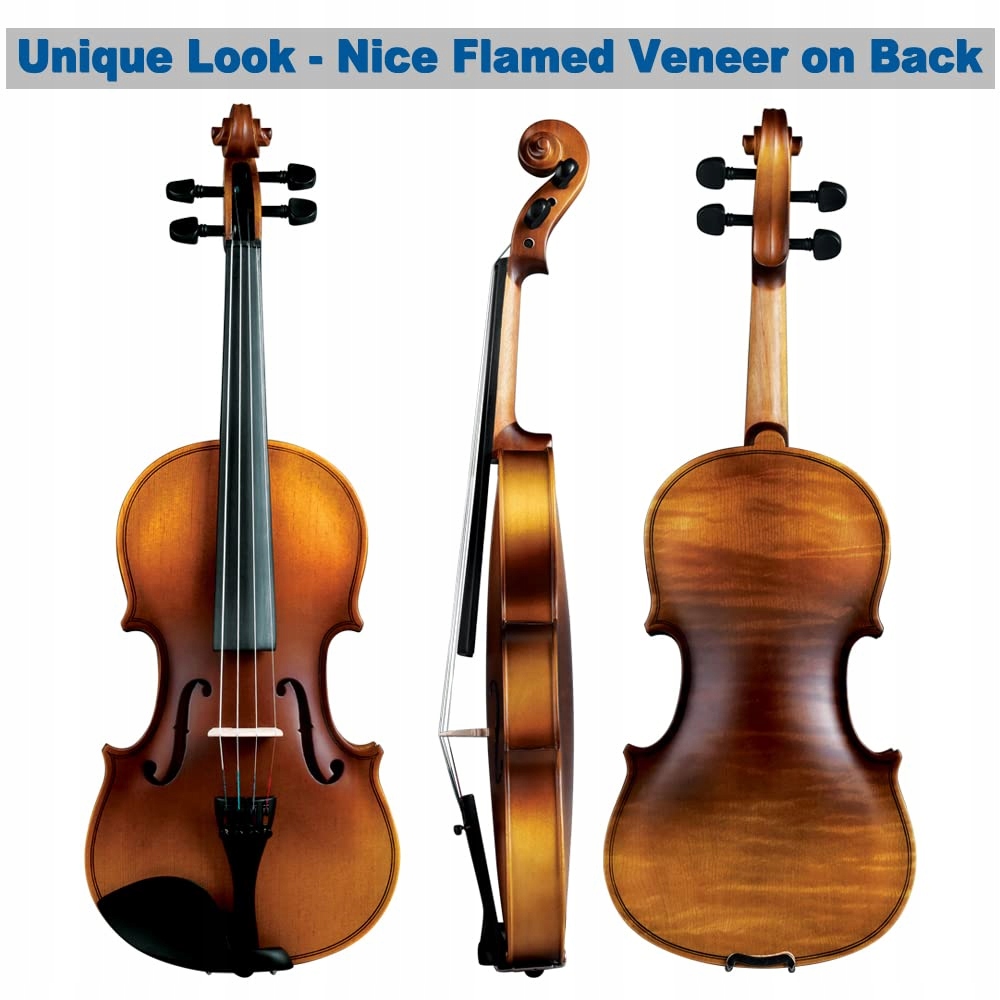 У набір також входять 2 бриджі, тюнер з кліпсою, каніфоль і додаткові струни. Завдяки цьому всі аксесуари, необхідні для початку навчання, вже включені в набір. Скрипка була належним чином налаштована перед доставкою, що полегшує налаштування інструменту. Античне напівглянцеве покриття надає їм елегантного вигляду, а верхня частина з ялини ручної роботи та задня частина з клена забезпечують високу якість.