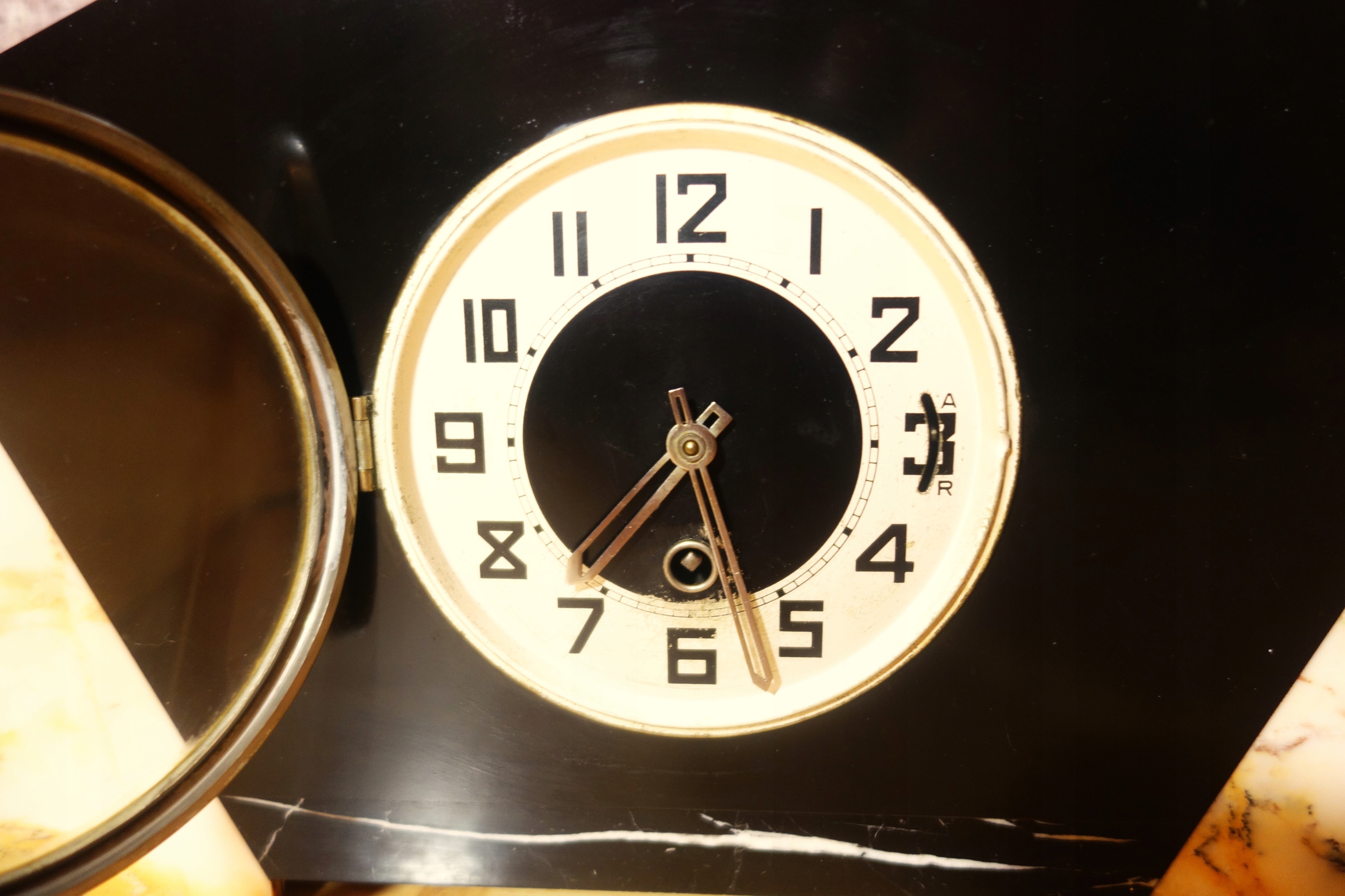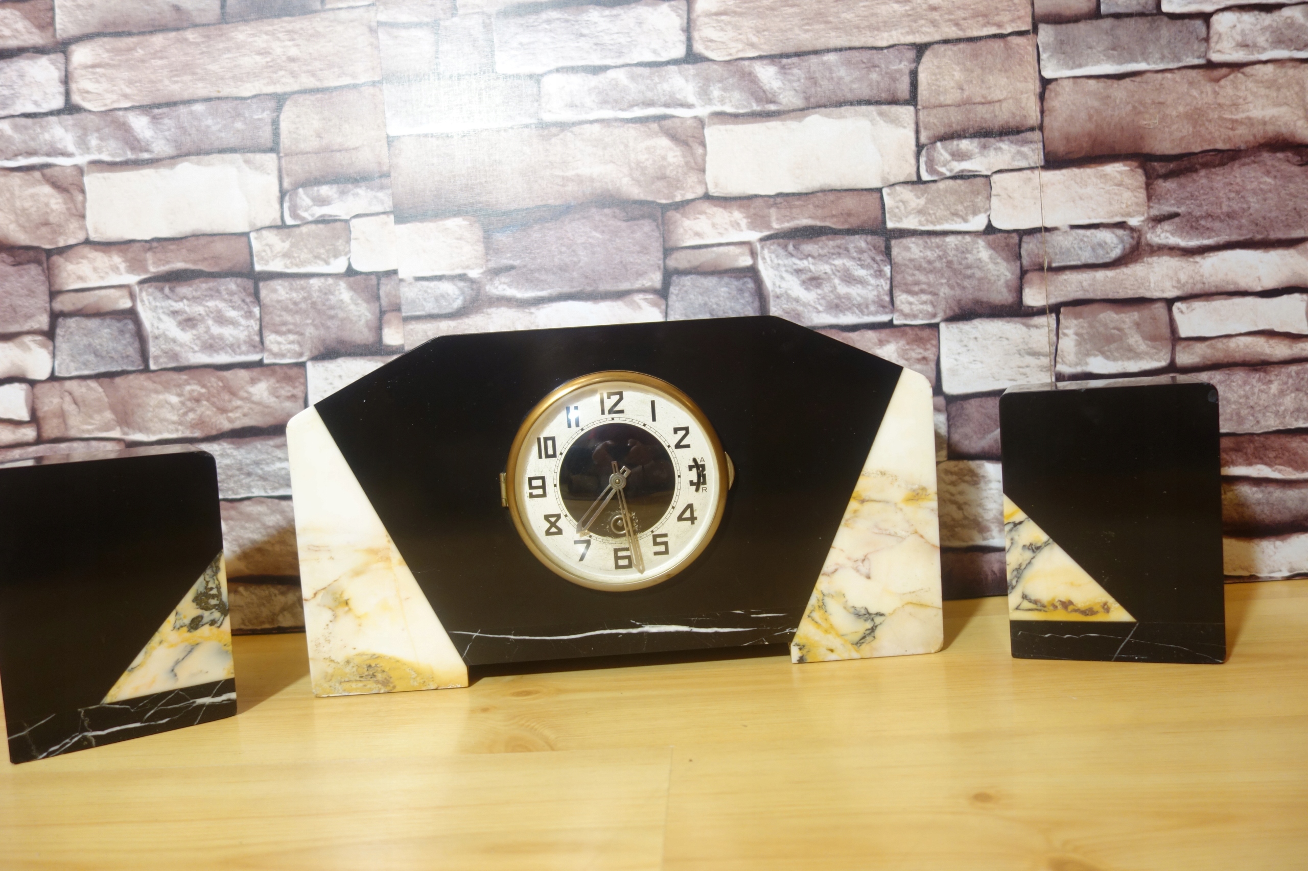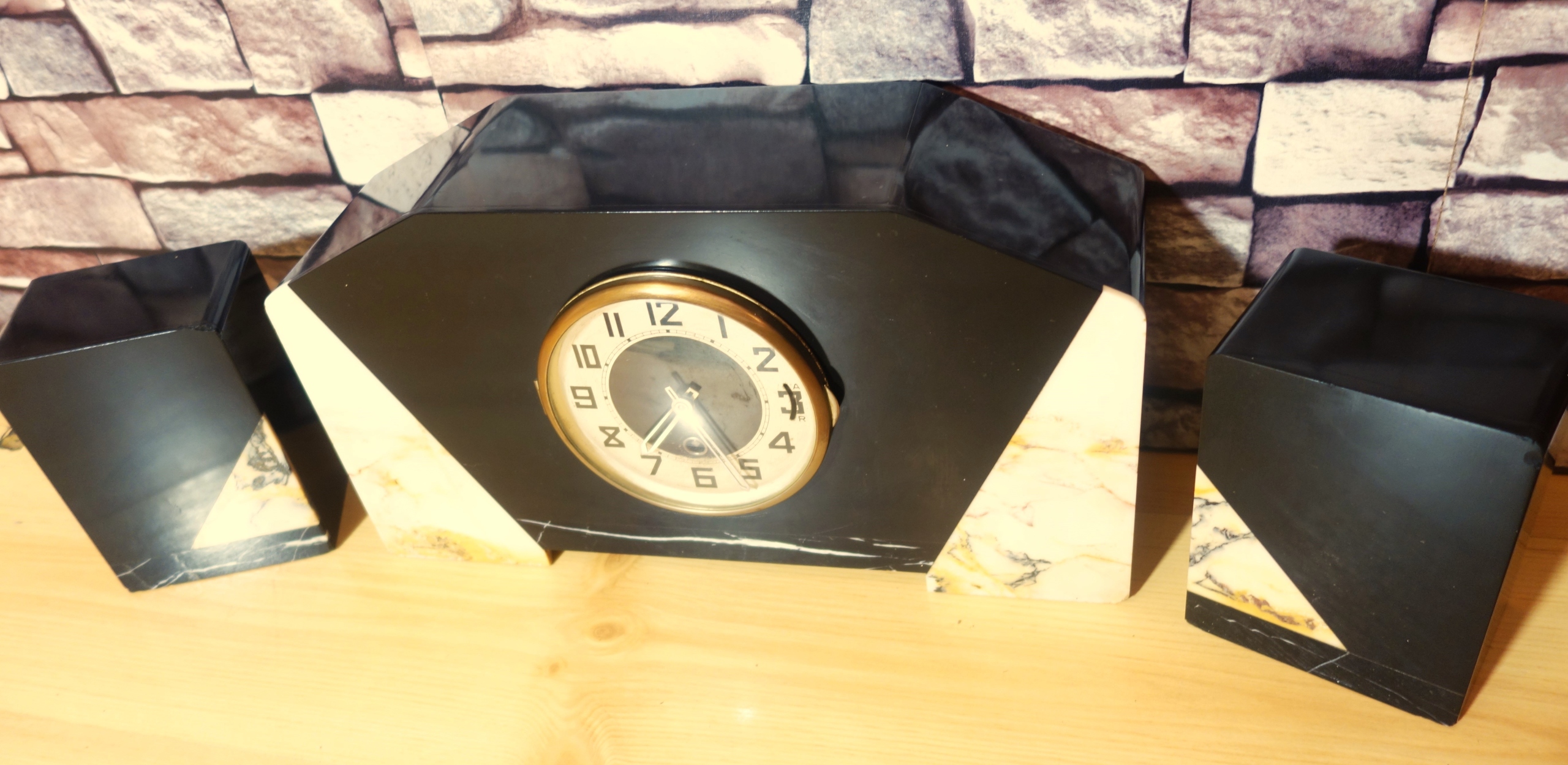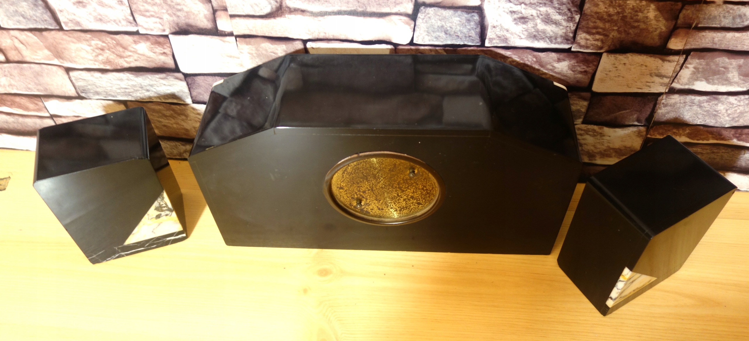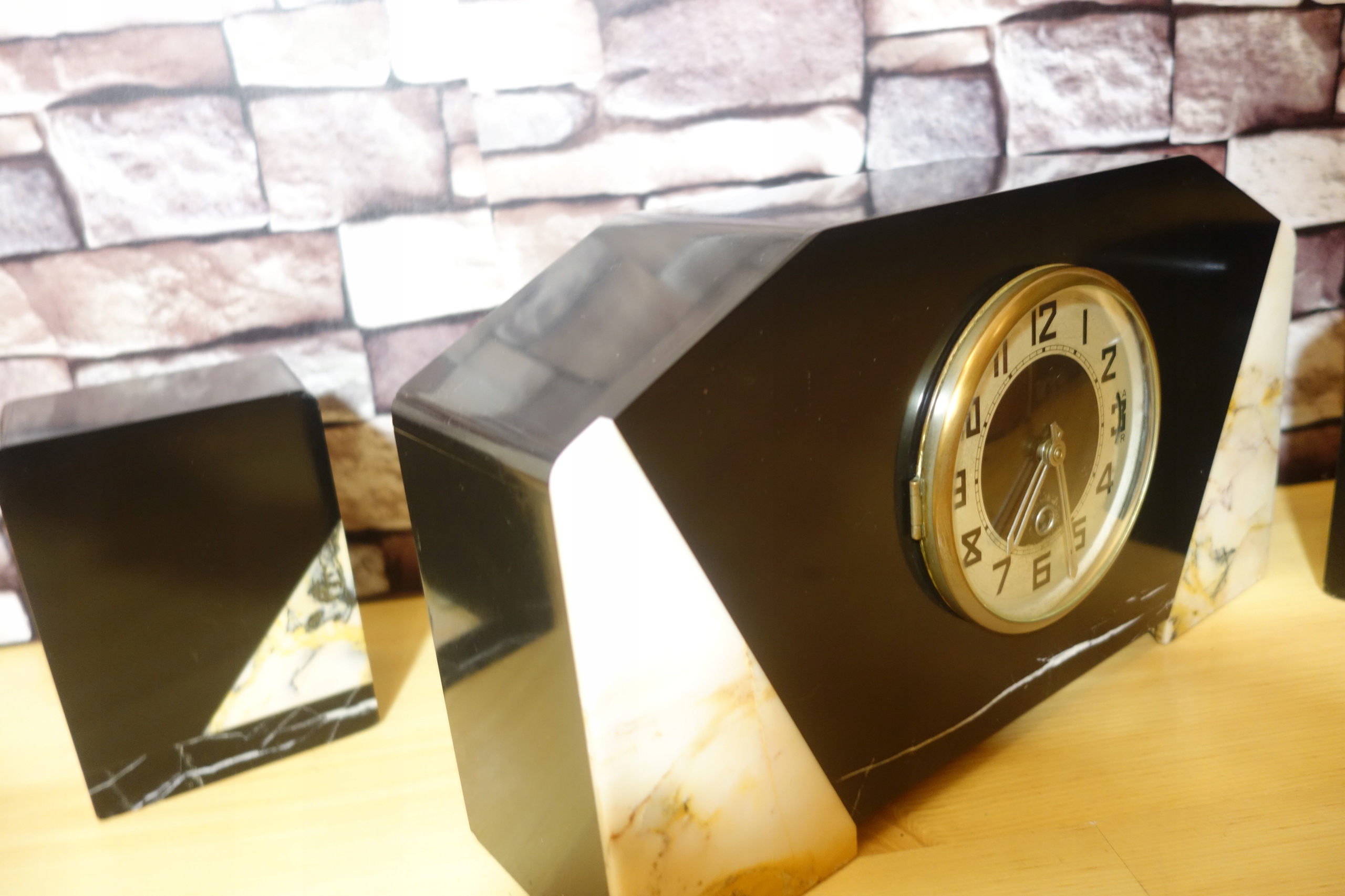 Ładny ,duży ,zegar kominkowy Art Deco marmur plus przystawki