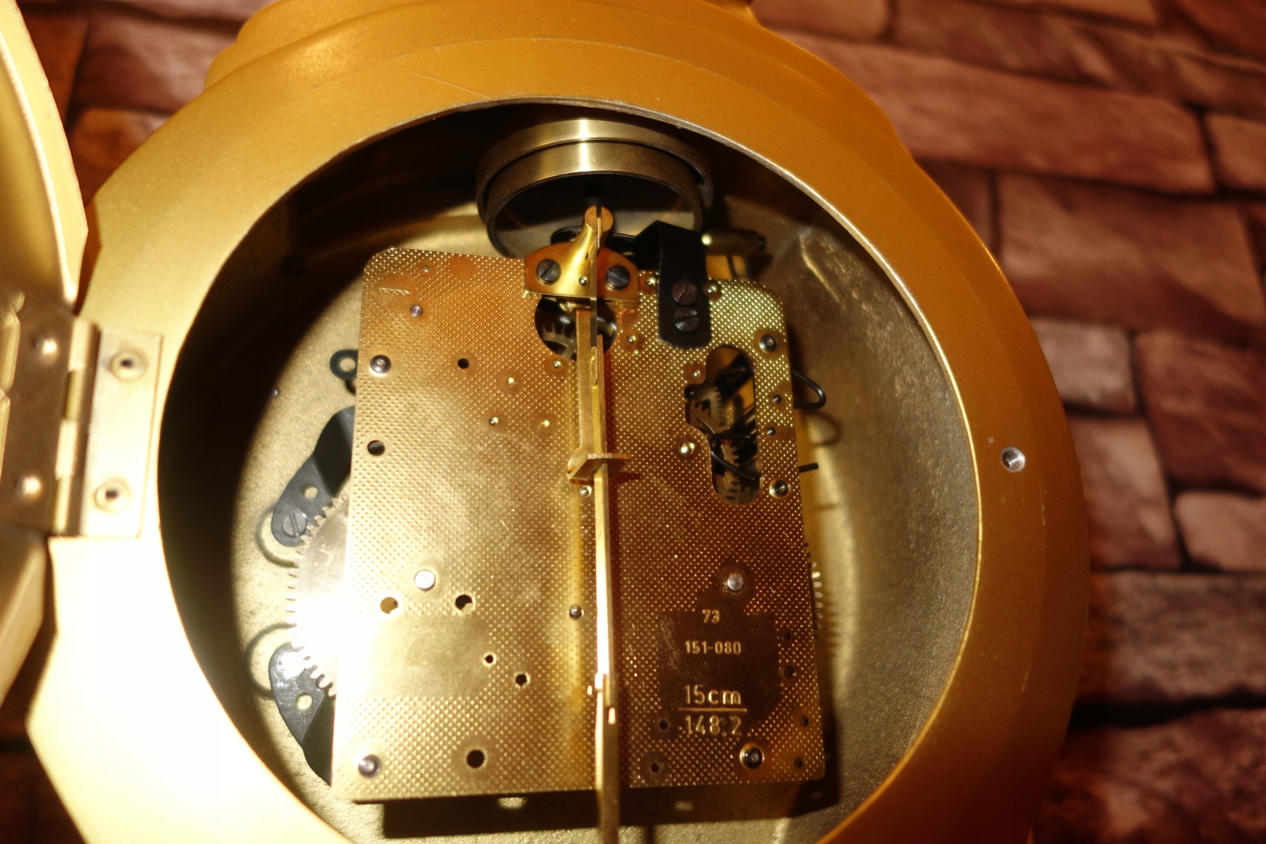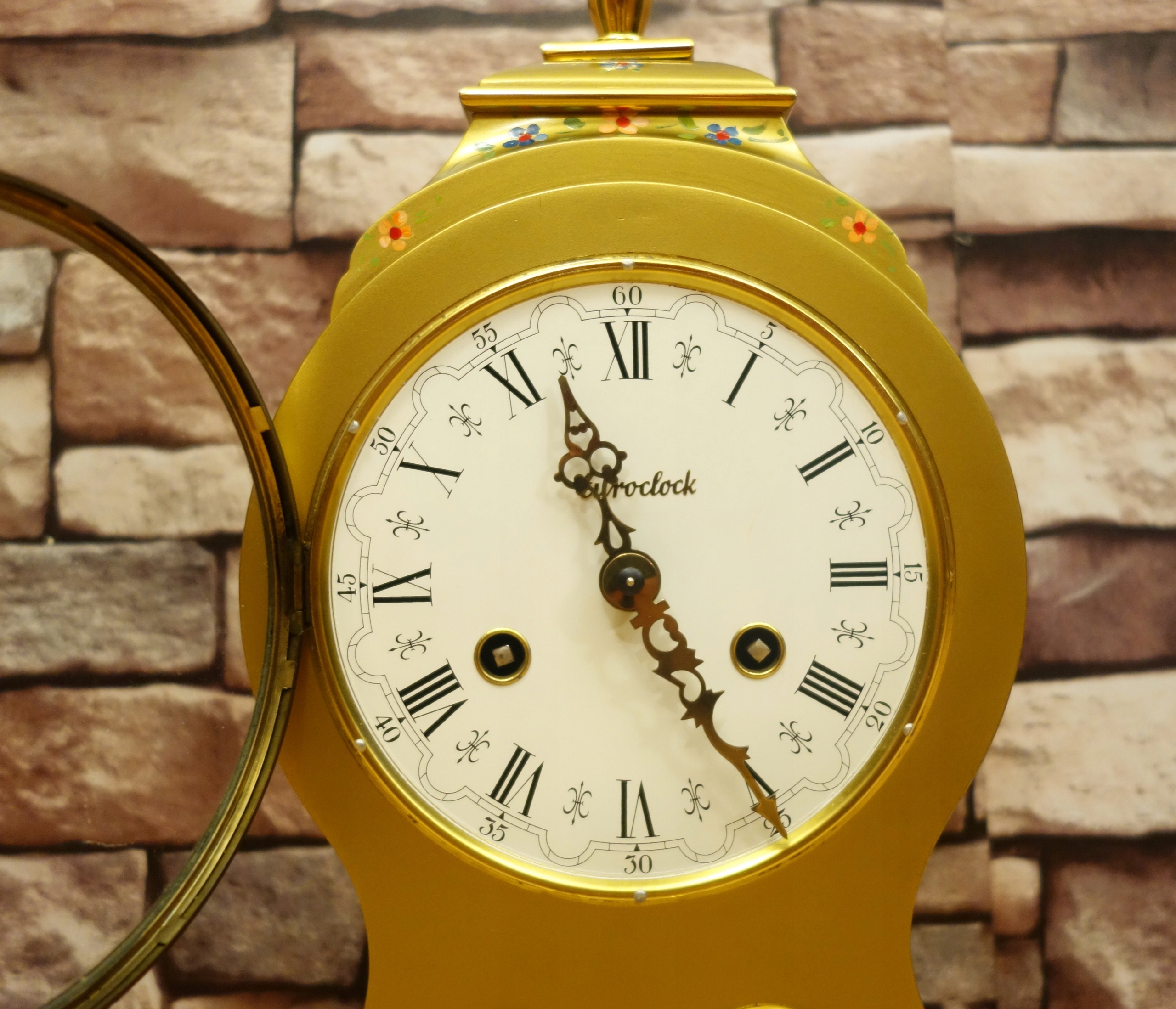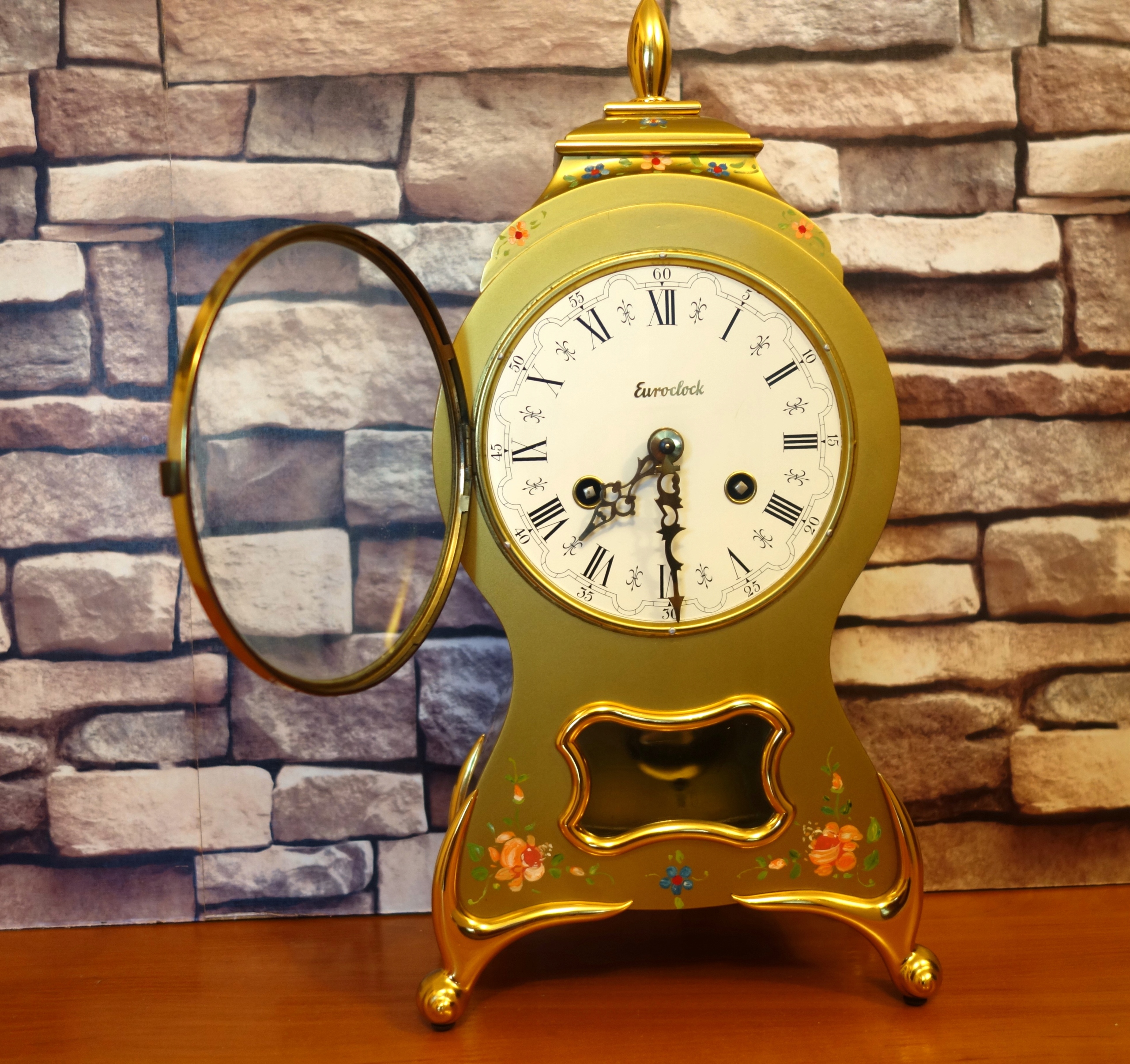 Годинник має гарний металевий (я не знаю, з якого металу чи сплаву) корпус, прикрашений ручним розписом квіткові прикраси. корпус без дефектів, годинник б’є повно і півгодини на двох дзвонах за допомогою двох молотків