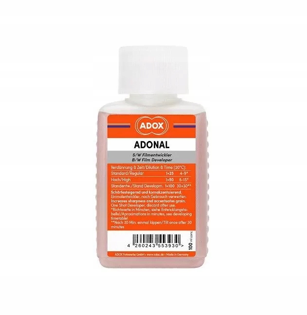 ADOX Adonal 100 мл за рецептом легендарного проявника Rodinal для великих розведень 1+25, 1+50 1+200 створює різкий негатив. В Інтернеті ви можете знайти багато інформації про індукцію загострення навіть у більш високих розведеннях і цікаві результати.
