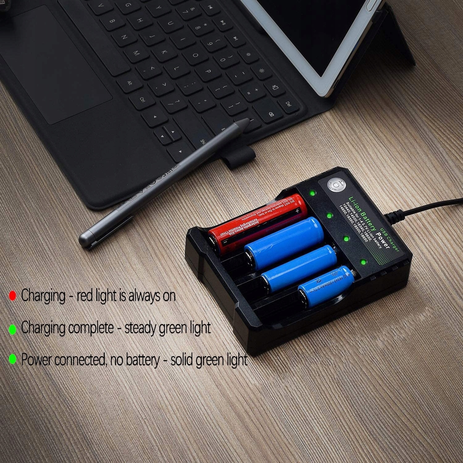 - Зарядний пристрій Світлодіодний зарядний пристрій із 4 слотами для літій-іонних моделей 3,7 В 10440 14500 14650 16340 16650 18350 18500 18650 універсальних USB-портів інтелектуальна швидка зарядка