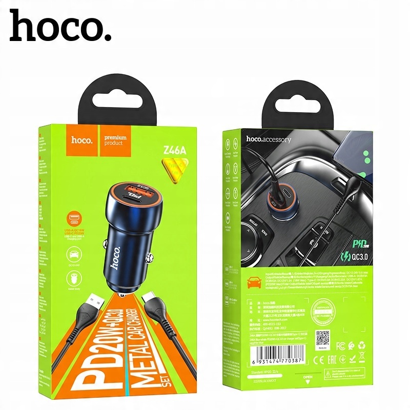 Ładowarka samochodowa , USB 3.1 typ C, USB typ C Hoco 3000 mA + Kabel hoco. (OEM) USB - USB typ C 1 m czarny