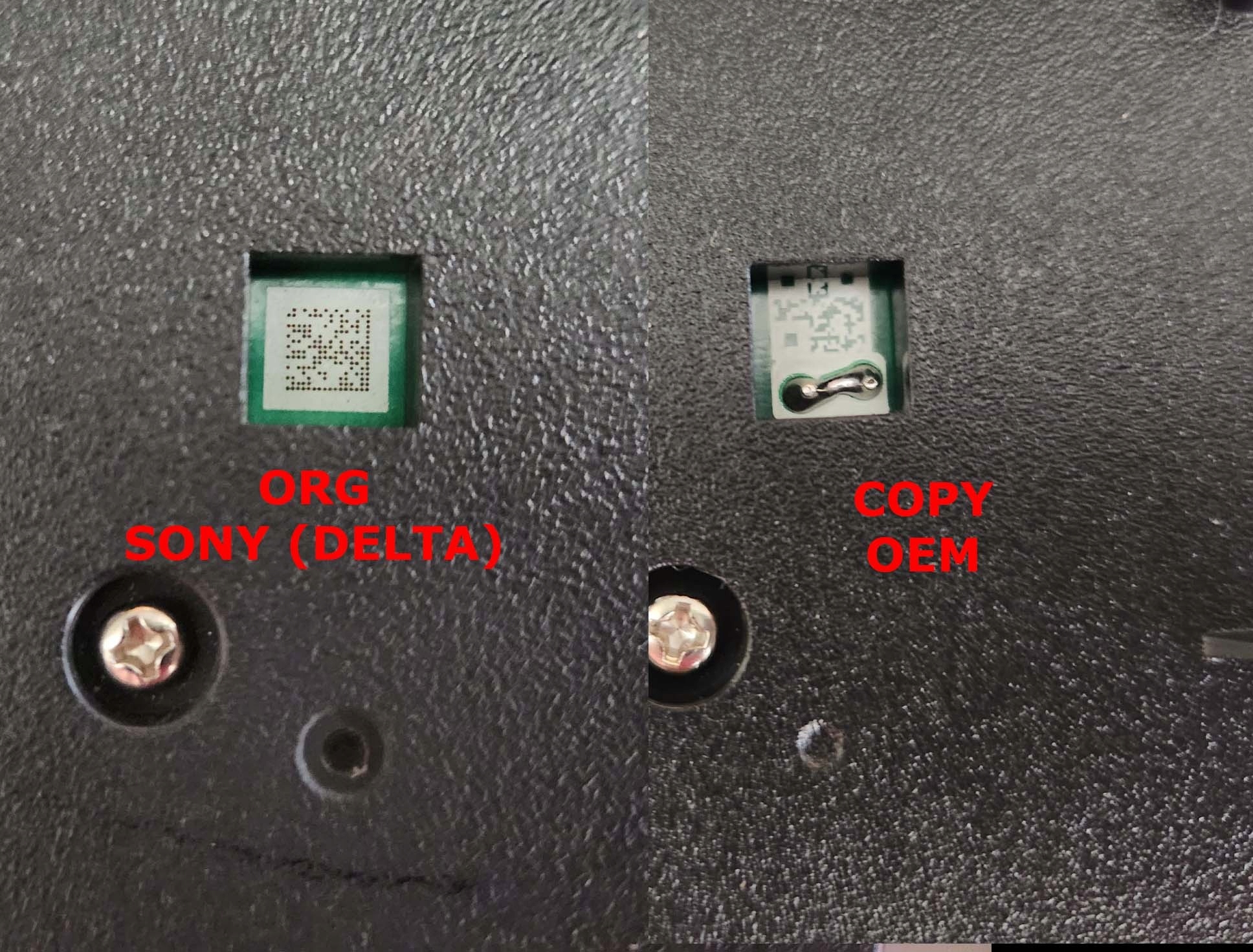 УВАГА! На ринку багато підробок неякісних блоків живлення. Зазвичай вони тривають кілька тижнів. У галереї розміщені фотографії, що демонструють відмінності в якості виготовлення (кількість елементів) та порівняльні фото, як розпізнати оригінал (насамперед, якість QR-коду на друкованій платі)