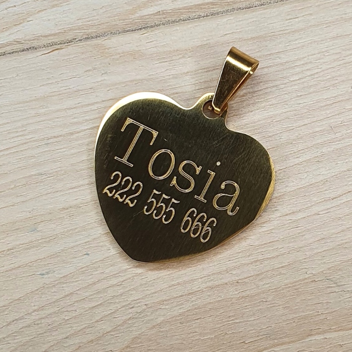 АДРЕСНА КАРТКА для СОБАКИ ID СЕРЦЕ золото + ГРАВІРУВАННЯ