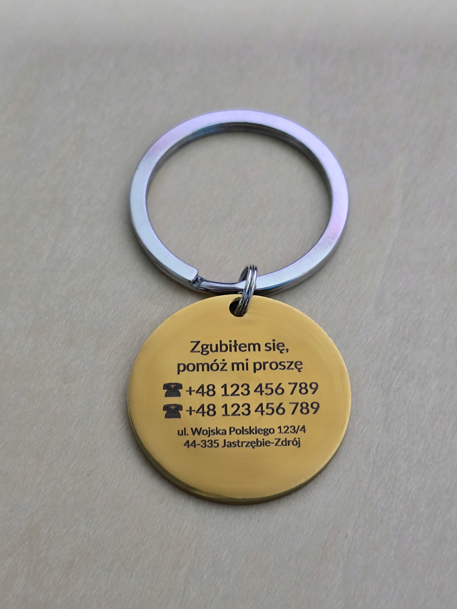 стильна адреса собаки у формі кола, виготовлена ​​з високої якості сталі , стійкої до подряпин та корозії. Персоналізація з постійною гравіруванням - назва домашнього улюбленця та номер телефону - забезпечує безпеку та витонченість. Наша продукція відрізняється високим рівнем персоналізації , тому ви можете створити адресу, ідеально підходить для потреб вашого вихованця. Ми пропонуємо широкий вибір шрифтів , Можливість округлення тексту та додавання зображень та ікон , які дадуть адресу унікального персонажа. зменшує ризик порушення адреси. гравірування