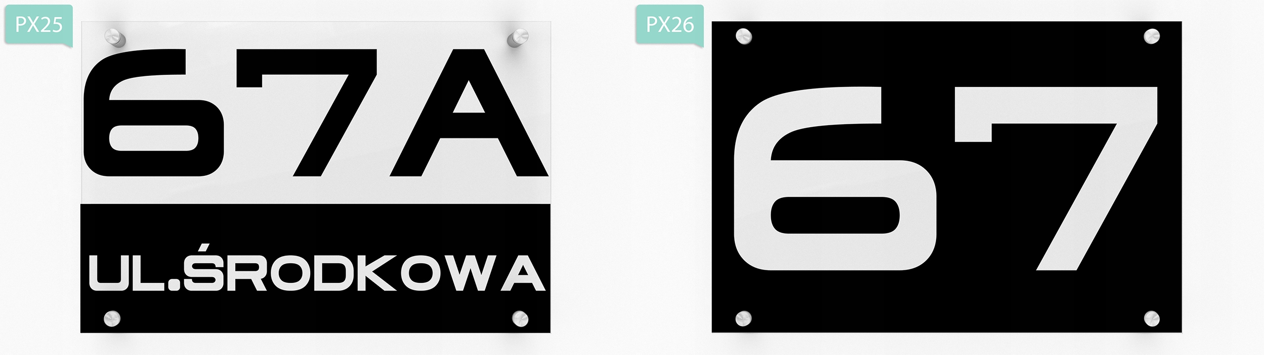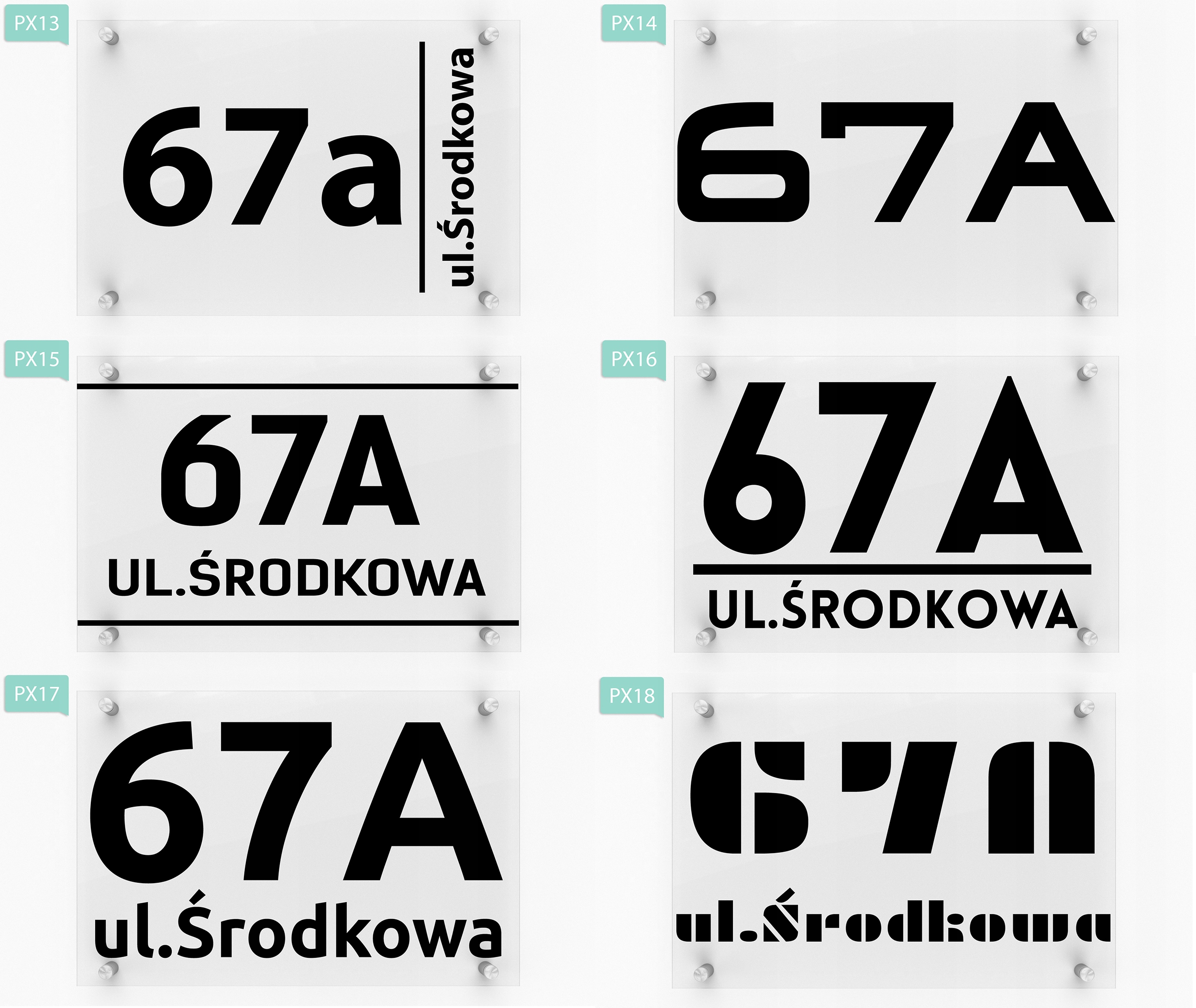 -Приклад замовлення: вул. Ostrowska 14, візерунок PX02, колір номера вулиці/назви рожевий.