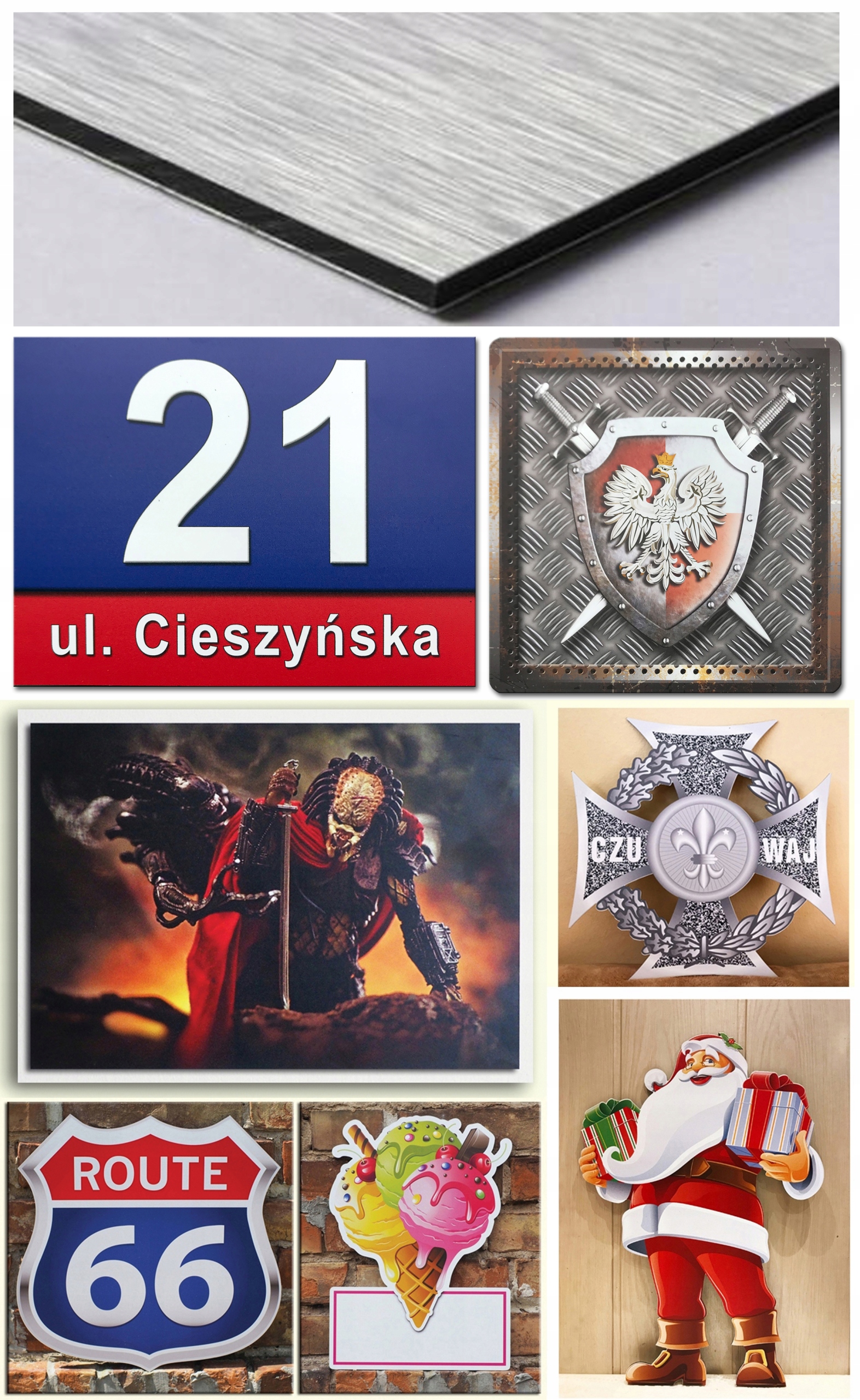 Нижче наведено фото в розрізі плити Dibond і зразки фотографій плит, виготовлених у нашій компанії.