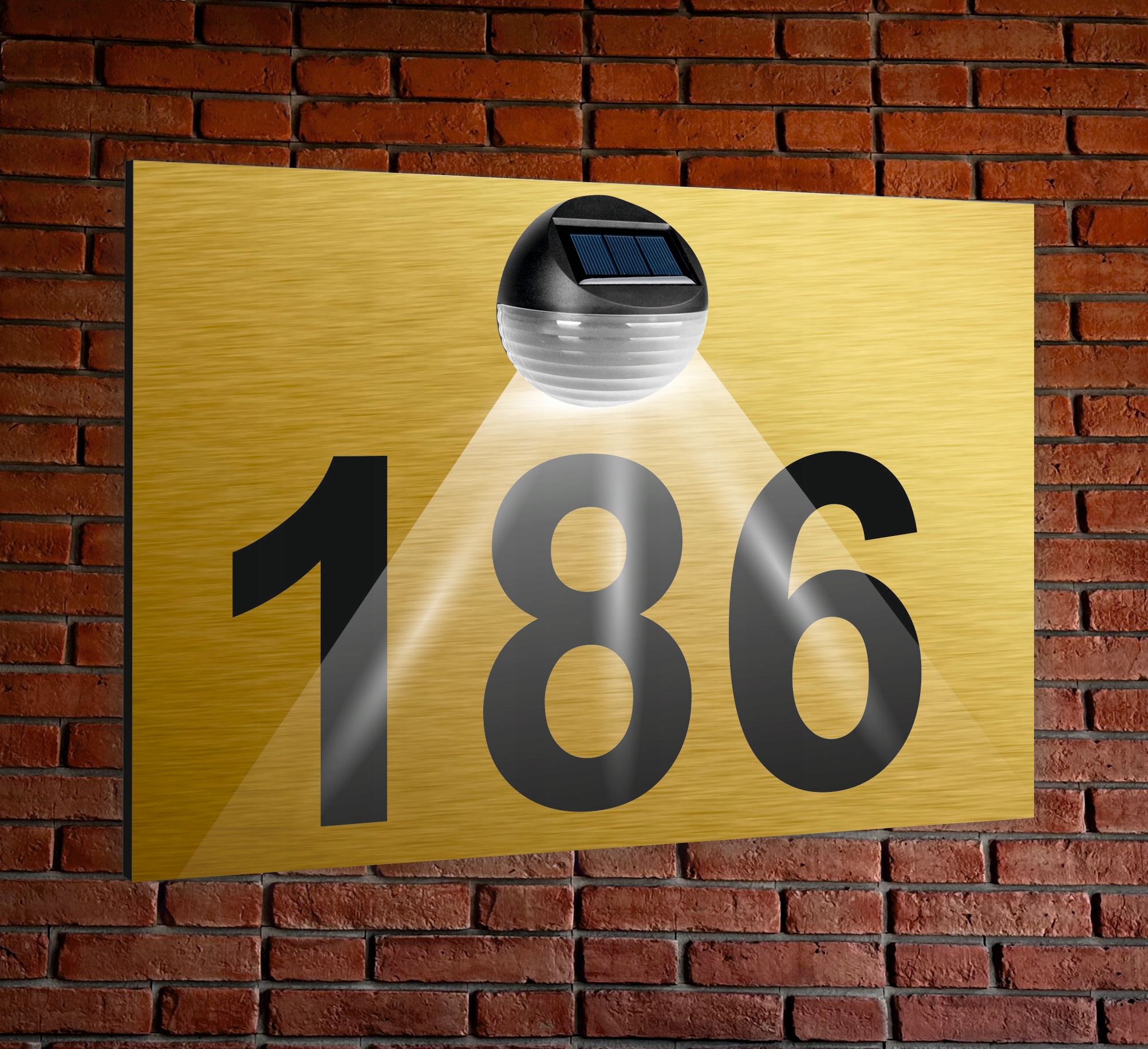 Освітлена таблиця адреси з власними даними, зробленими з дошки Dibond з елегантним та тривалим ультрафіолетовим друком.