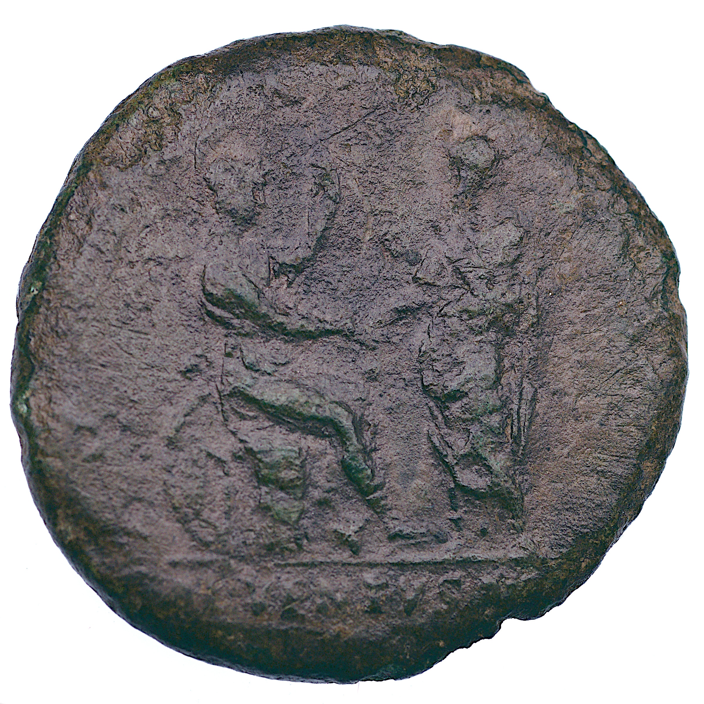 Св. 3-/4+, тираж, розбірливий екземпляр у центральній частині, зі старою, скляною, темно-зеленою патиною, потертим краєм. Рідкісніший номінал у рідкісному варіанті – лише один примірник у базі даних на веб-сайті OCRE.