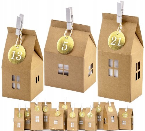 АДВЕНТ-КАЛЕНДАР - 24 БУДИНОЧКИ З ЕКО КРАФТ-ПАПЕРУ