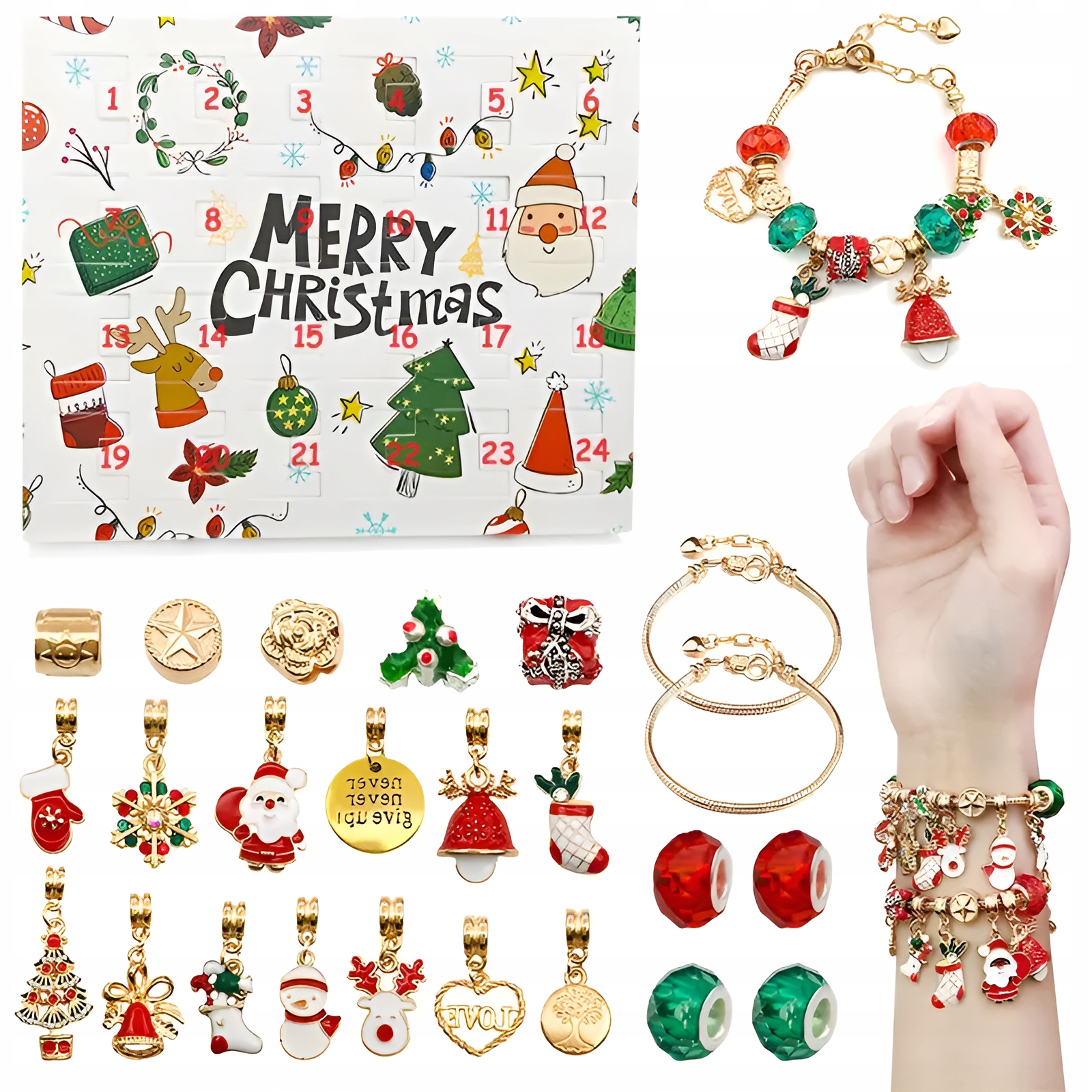 АДВЕНТ КАЛЕНДАР 24 ЕЛЕМЕНТИ БРАСЛЕТИ ДЛЯ ДІВЧИНКИ АДВЕНТ ПІДВІСИ