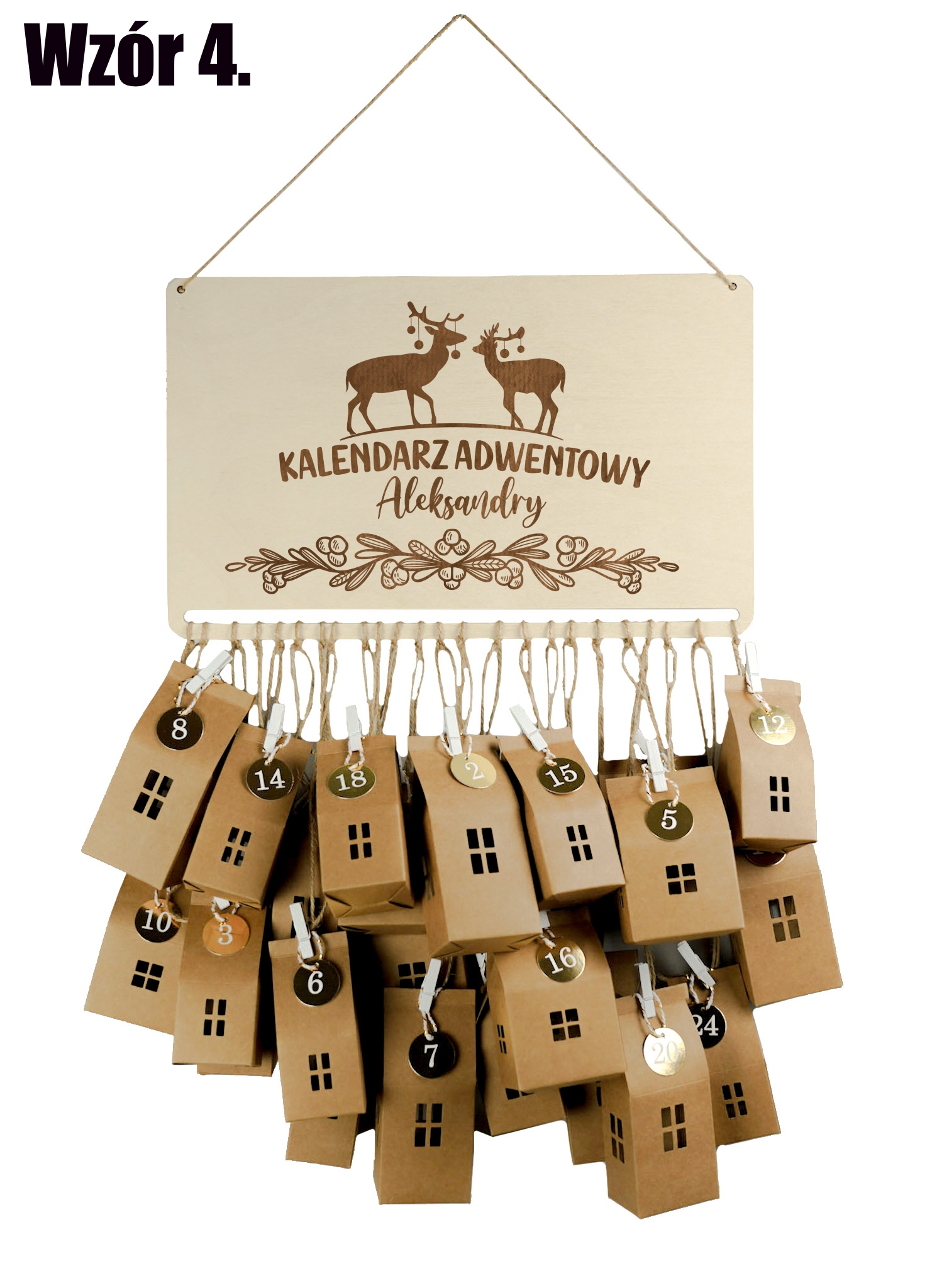Дерев'яний адвент-календар + 24 будиночки (весь набір для самостійної збірки)