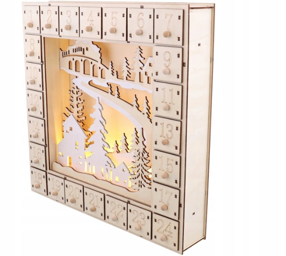 АДВЕНТ КАЛЕНДАР ДЕРЕВ'ЯНИЙ З LED ПІДСВІЧУВАННЯМ