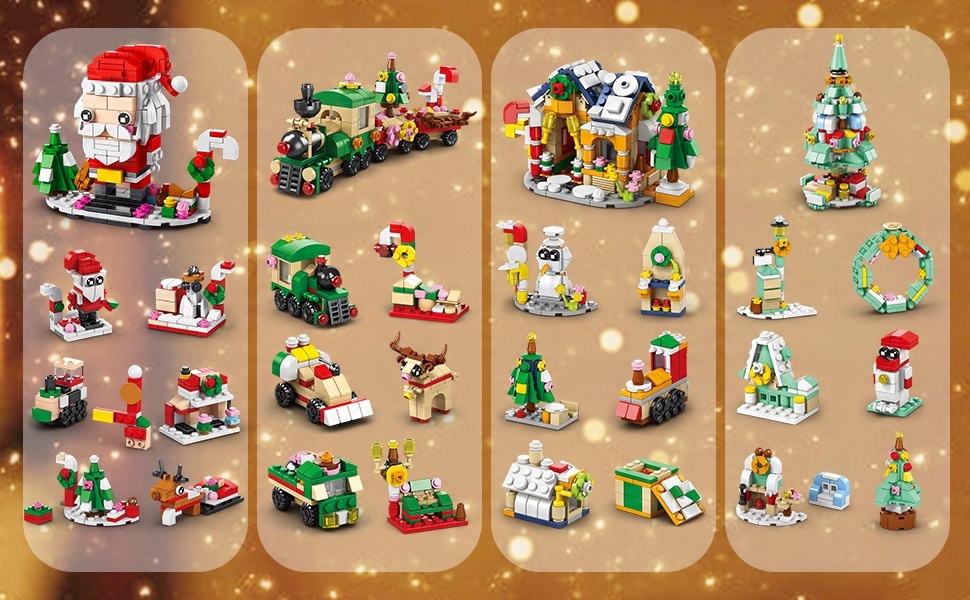 - ♥️Цей різдвяний календар містить 1122шт блоки. < b >Набір будівельних блоків Різдвяного зворотного відліку містить креативний дизайн різдвяної гри на подарунковій коробці.