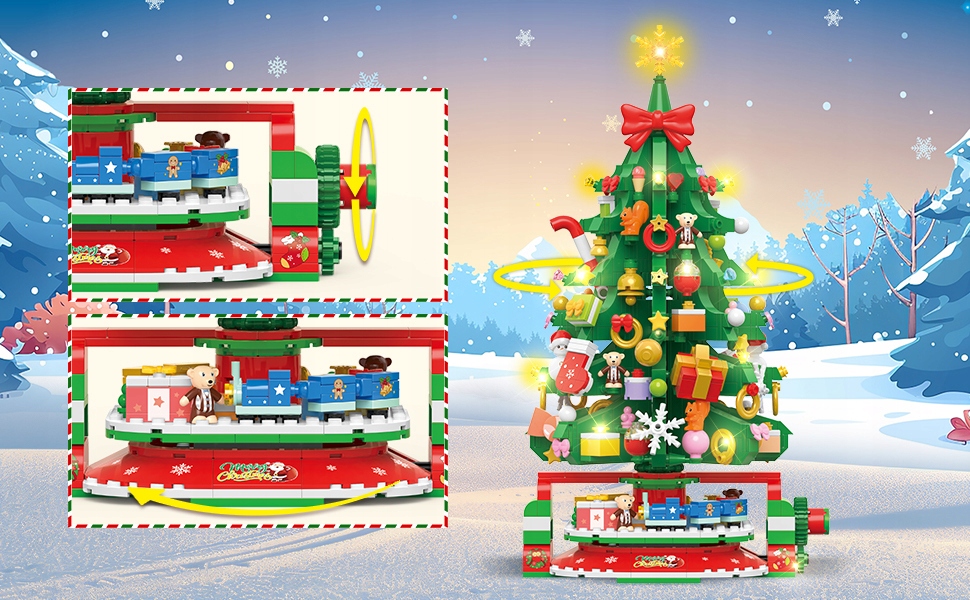 - ♥️Обертаючи ручкою, діти можуть бачити ялинку, що обертається, і рухомий поїзд, що робить сцену живою та смішною. Цей креативний дизайн робить його фантастичною іграшкою для святкування Різдва.