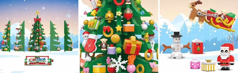 - ♥️Ми створили не потребуючий обслуговування, але вишуканий міні-блоки для ялинки з використанням міні-цеглинок 3,6 мм, щоб збагатити деталі ялинки, прикрашеної Сантою, сніговиком, ведмедями та потягом тощо.