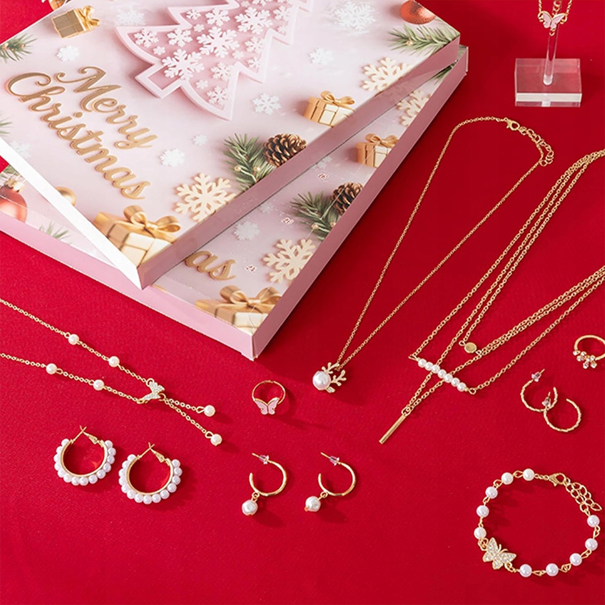 З браслетами, намистом, каблучками та сережками, модний, 24-денний відлік, різдвяний подарунок для дружини, доньки, матері чи дівчини