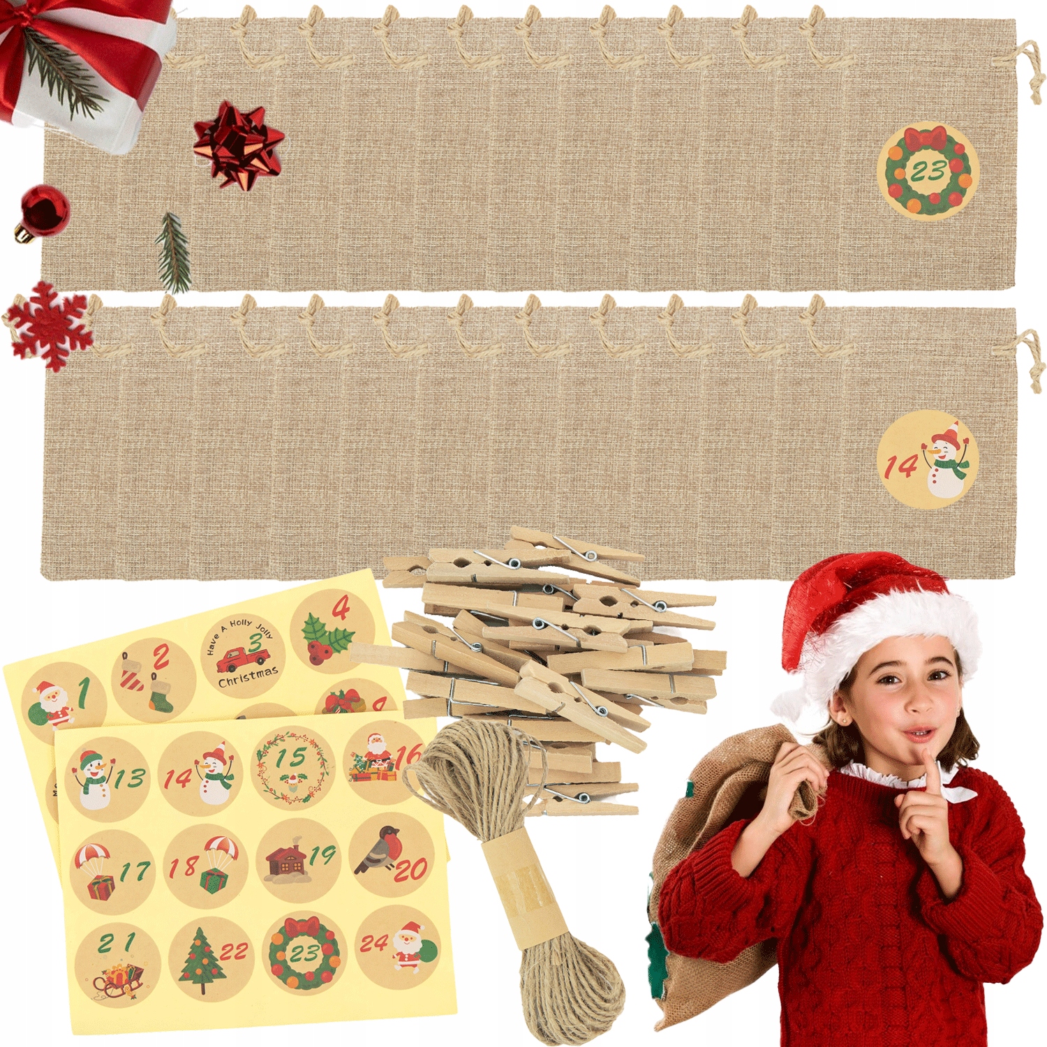 KALENDARZ ADWENTOWY DIY WORECZKI JUTOWE WISZĄCY ŚWIĘTA ZESTAW 24 PREZENTY