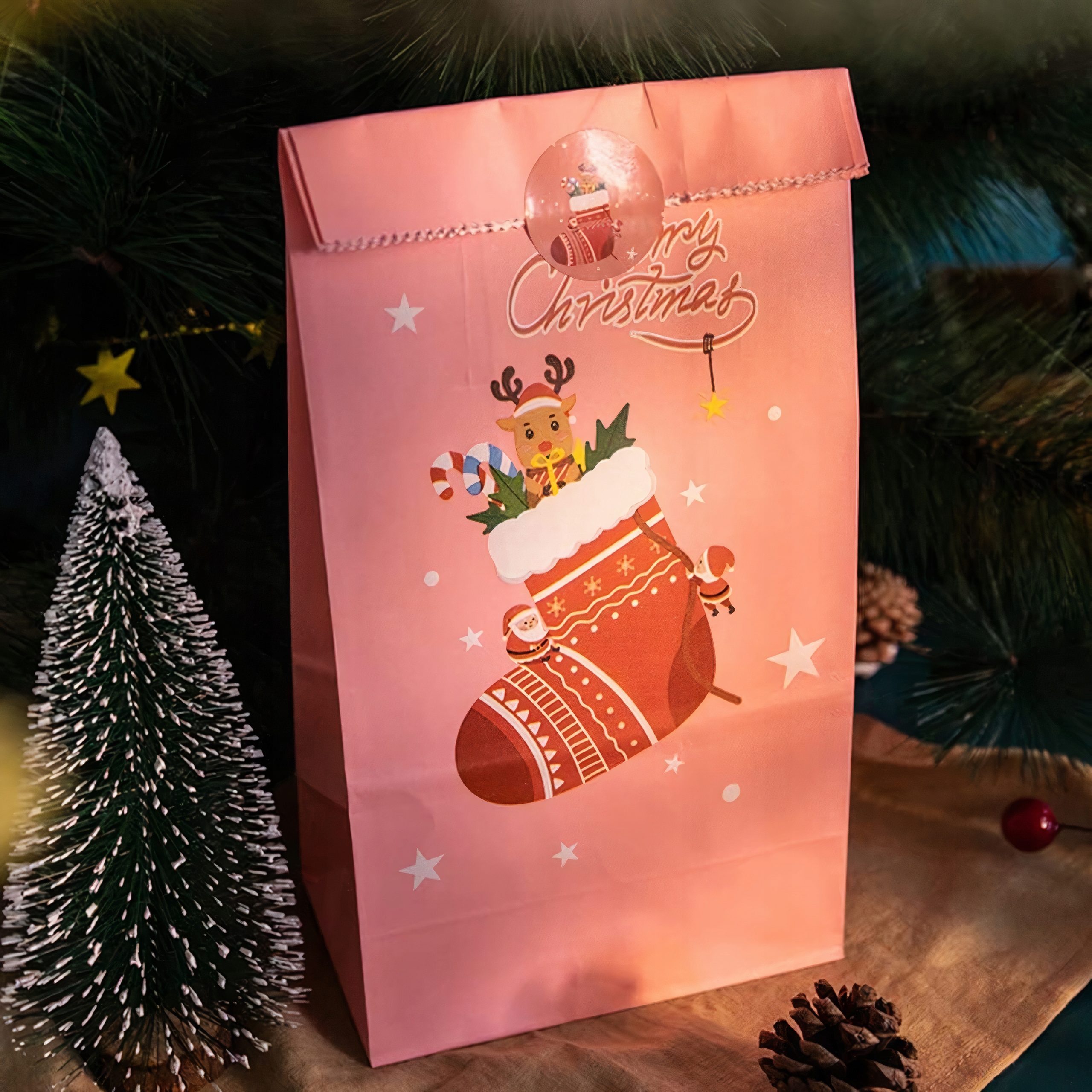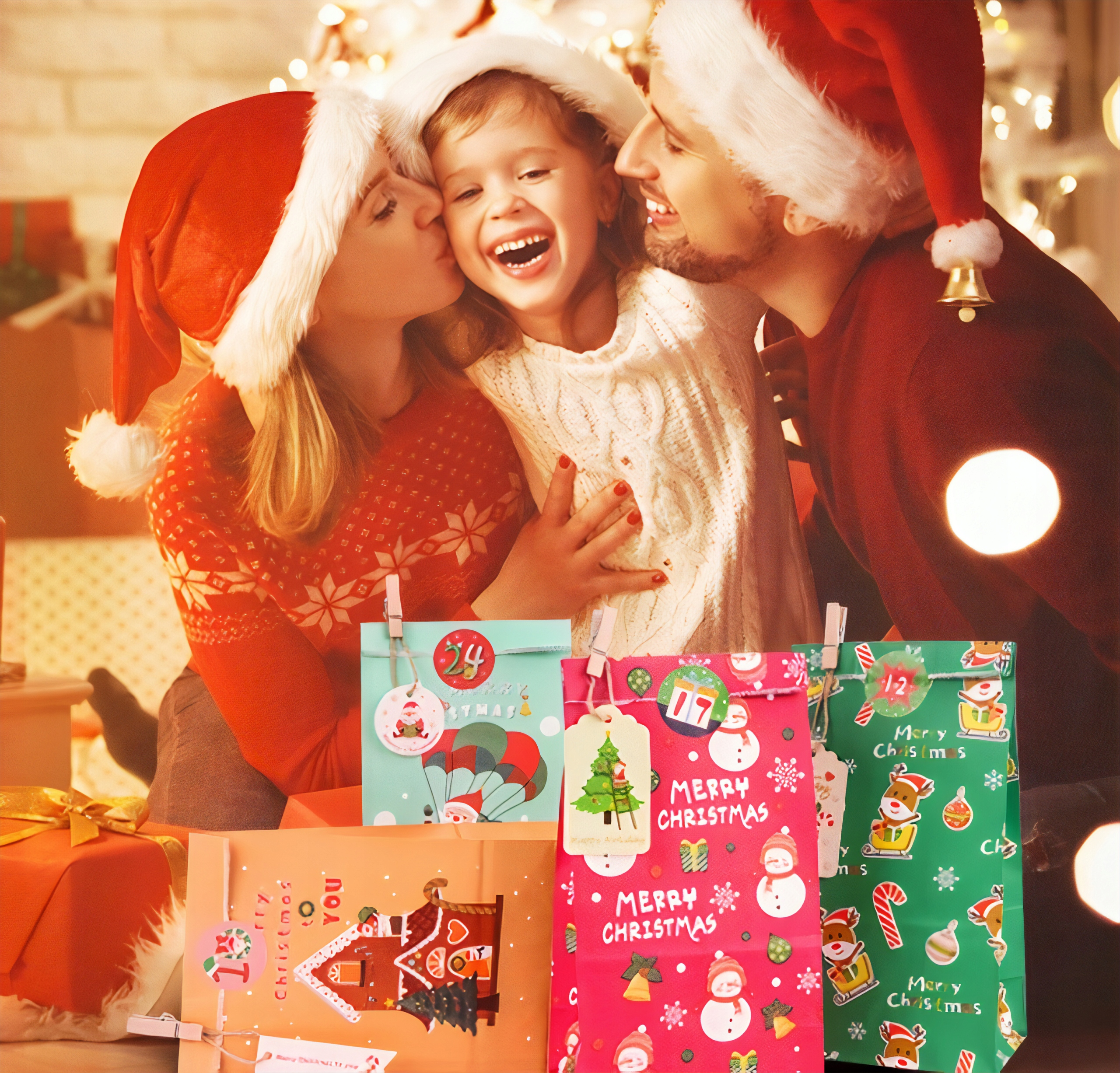 ⭐Набір складається з 24 паперових пакетів еко-кольору, скріпок, мотузки, підвісок і круглих наклейок з різдвяним мотивом!⭐