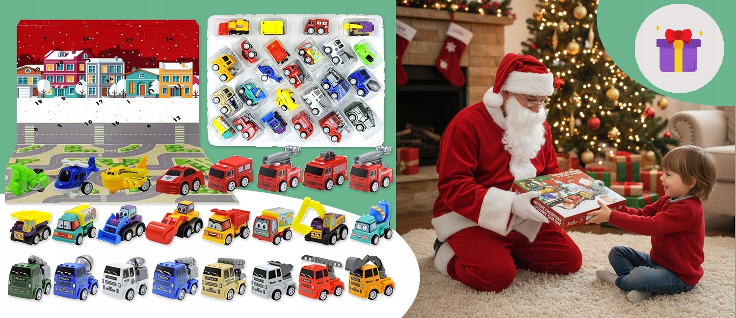 АДВЕНТ-КАЛЕНДАР ДЛЯ ДІТЕЙ 24 ЕЛ ІГРАШКИ ТРАНСПОРТ МАШИНИ МАШИНИ ПОДАРУНОК